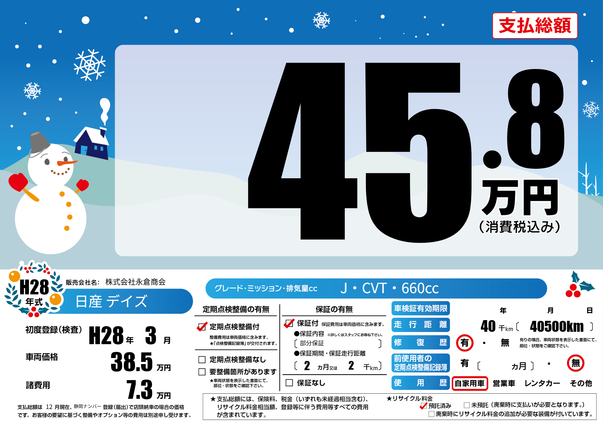 | 定期点検整備 | 定期点検整備あり | ||