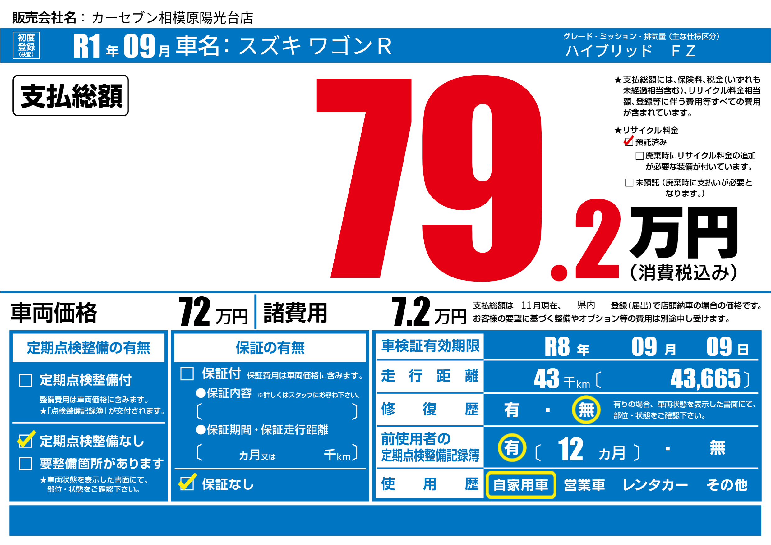 | 定期点検整備 | 定期点検整備なし | ||