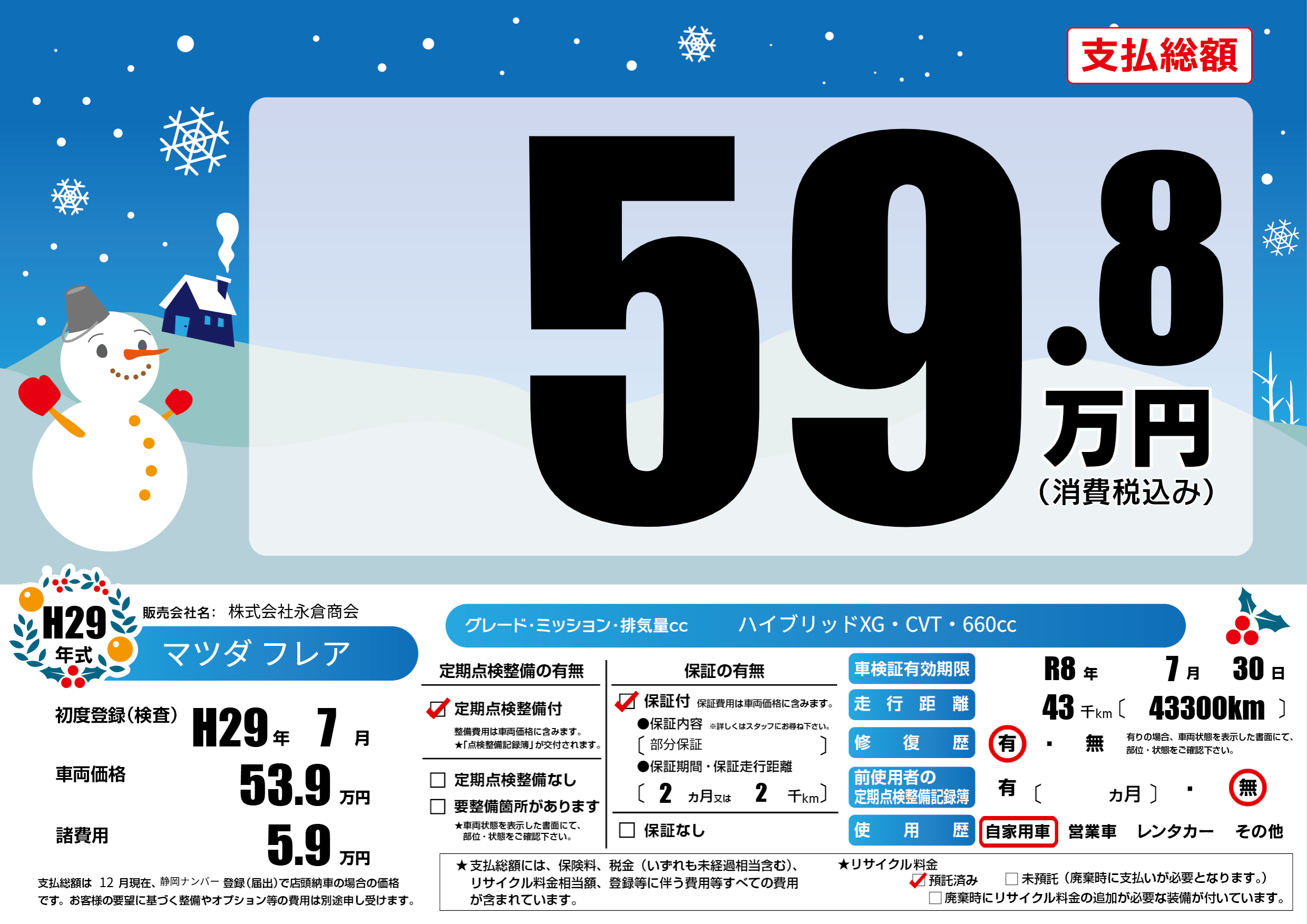 | 車名 | マツダ フレア | グレード ミッション 排気量 |