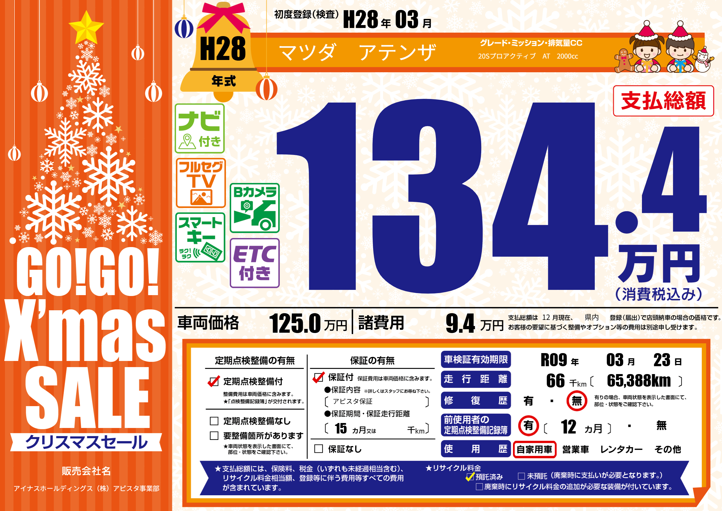 | 車名 | マツダ アテンザ | グレード ミッション 排気量 |