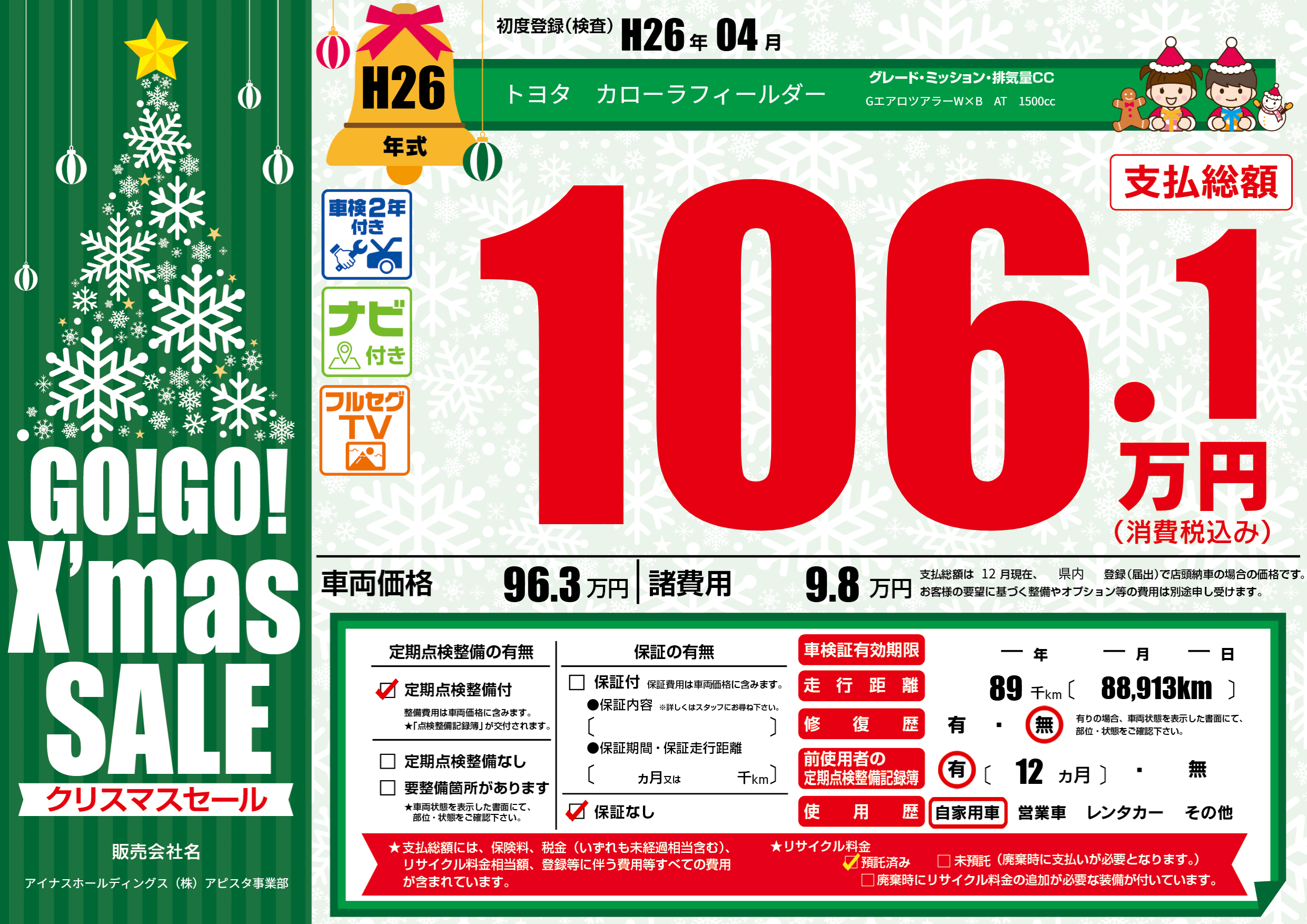 | 車名 | トヨタ カローラフィールダー | グレード ミッション 排気量 |