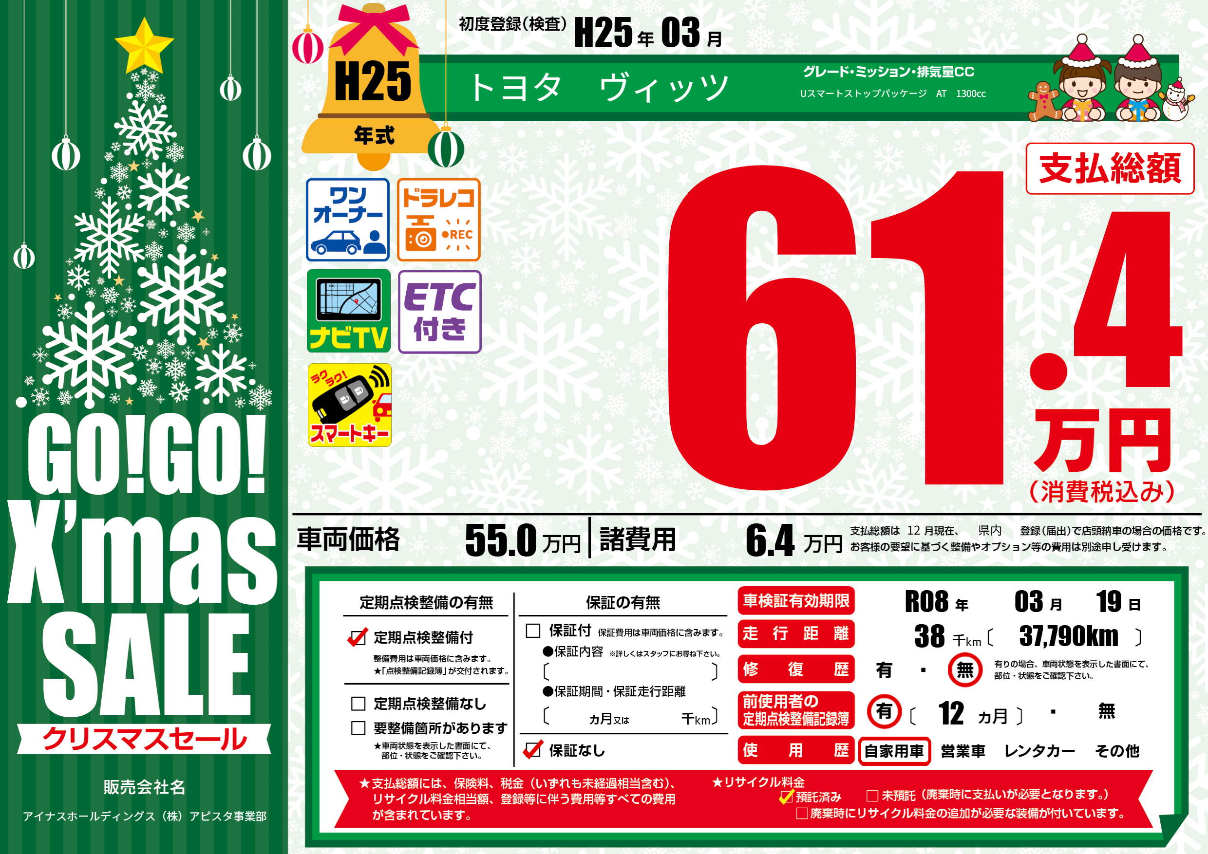 | 走行キロ | 3.8万km | 初年度登録 | H25年03月 |