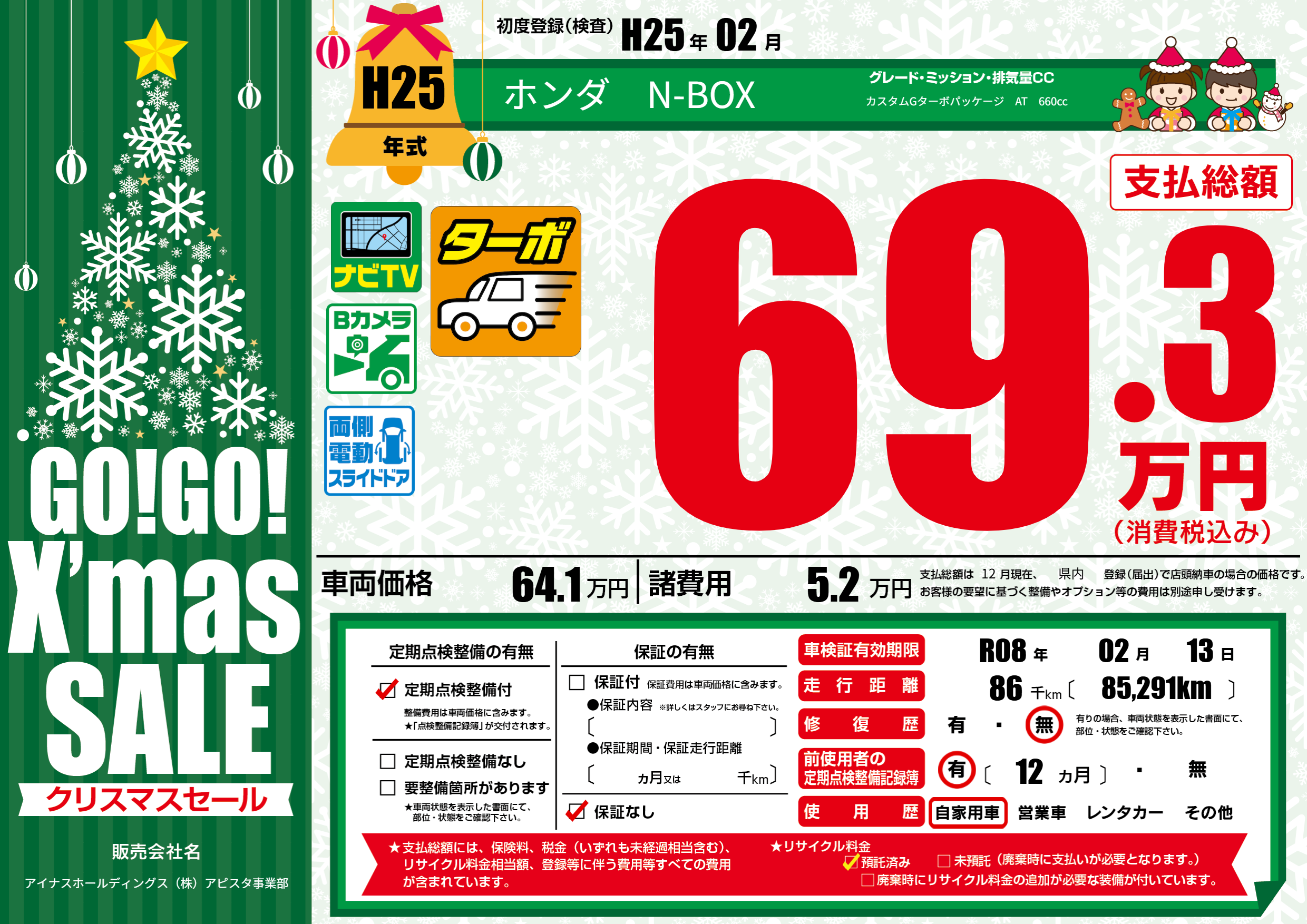 | 走行キロ | 8.6万km | 初年度登録 | H25年02月 |