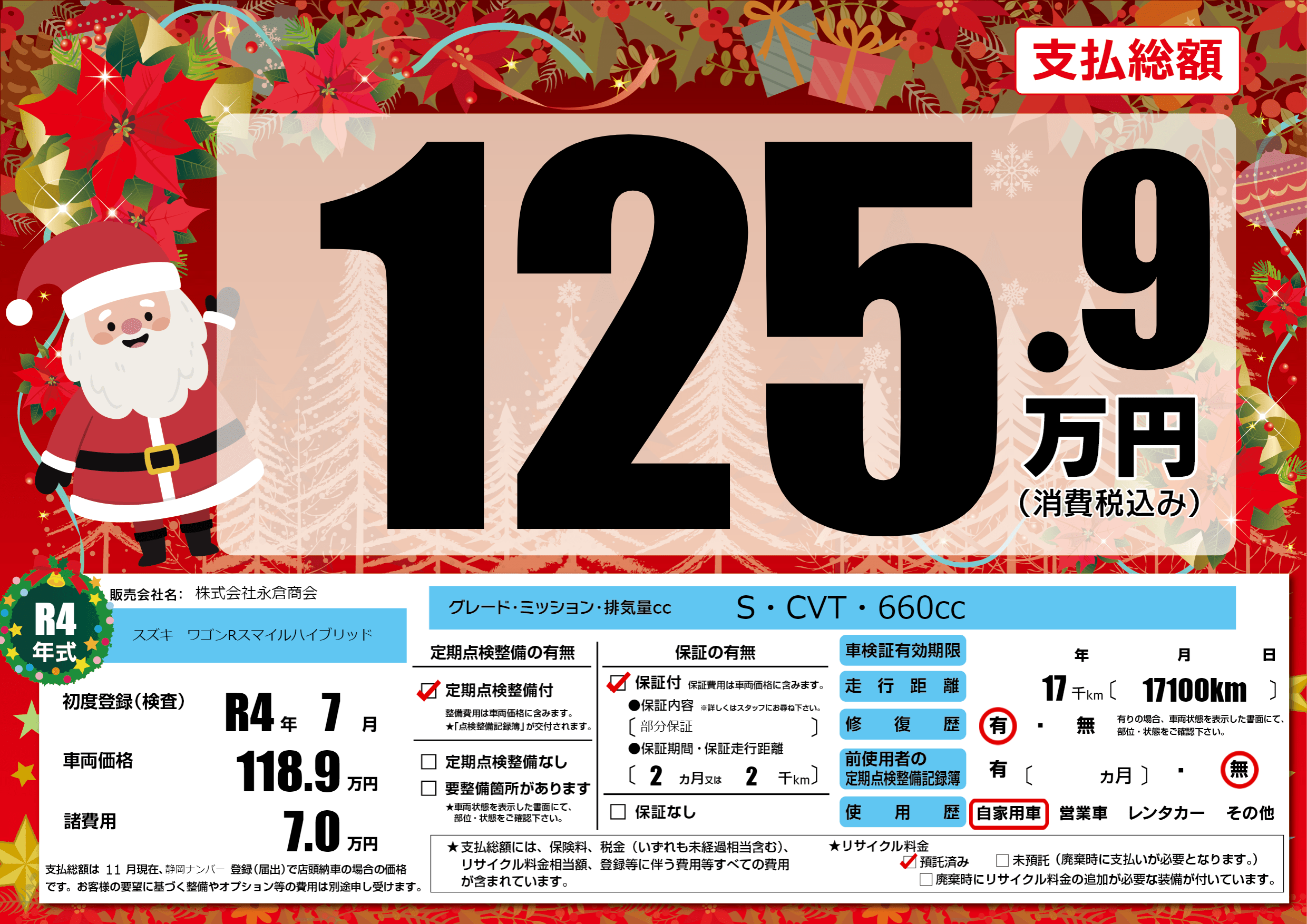 | 走行キロ | 1.7万km | 初年度登録 | R4年7月 |