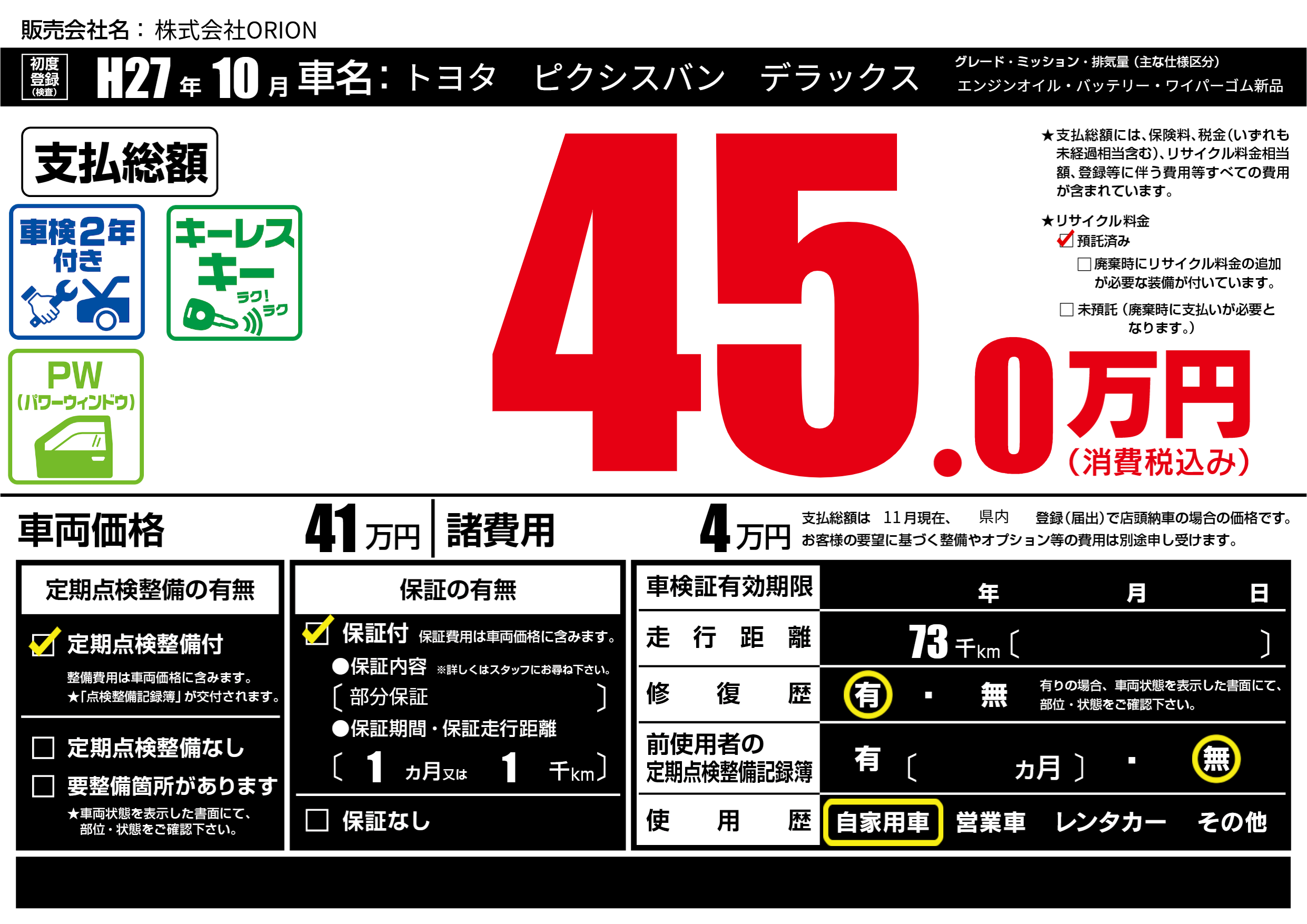 | 定期点検整備 | 定期点検整備あり | ||
