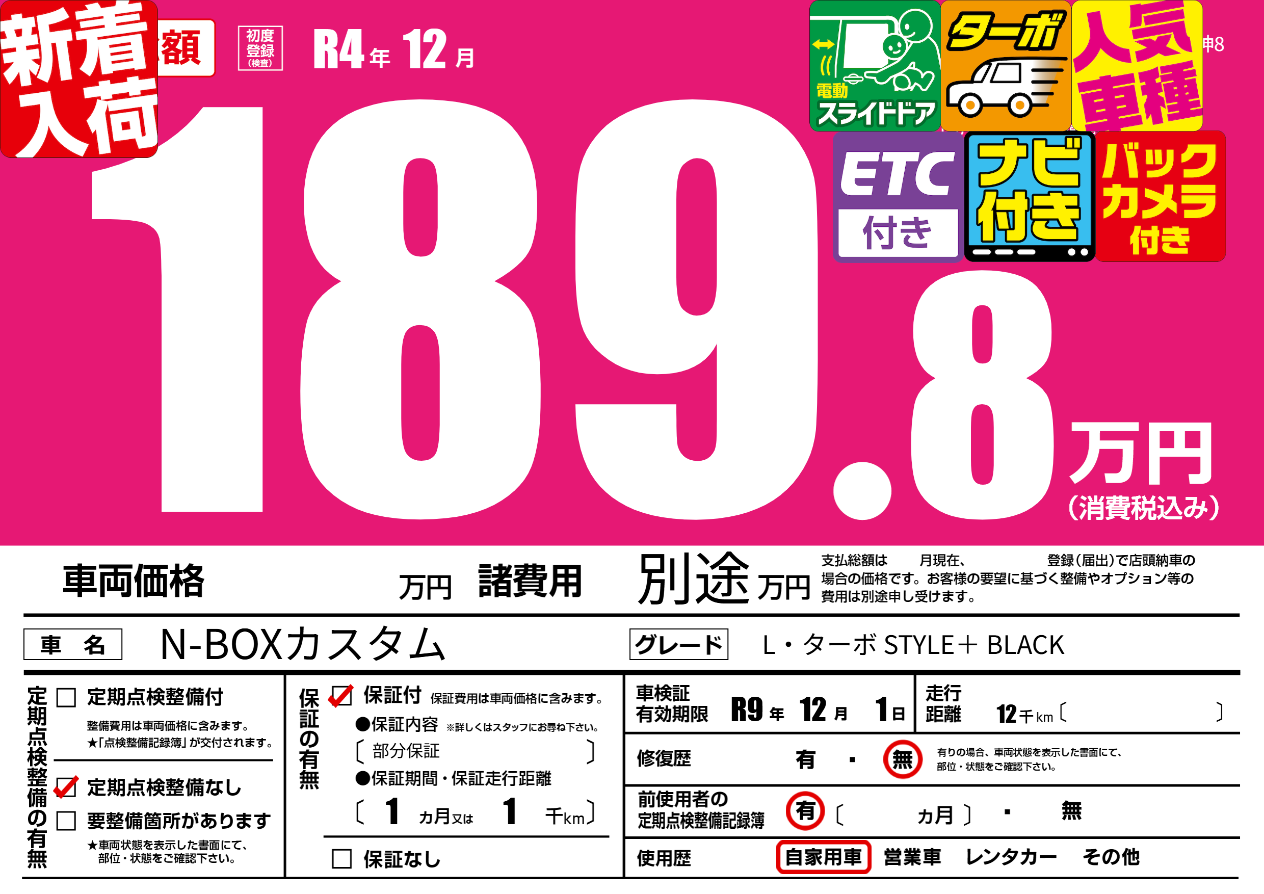 | 車名 | N-BOXカスタム | グレード ミッション 排気量 |