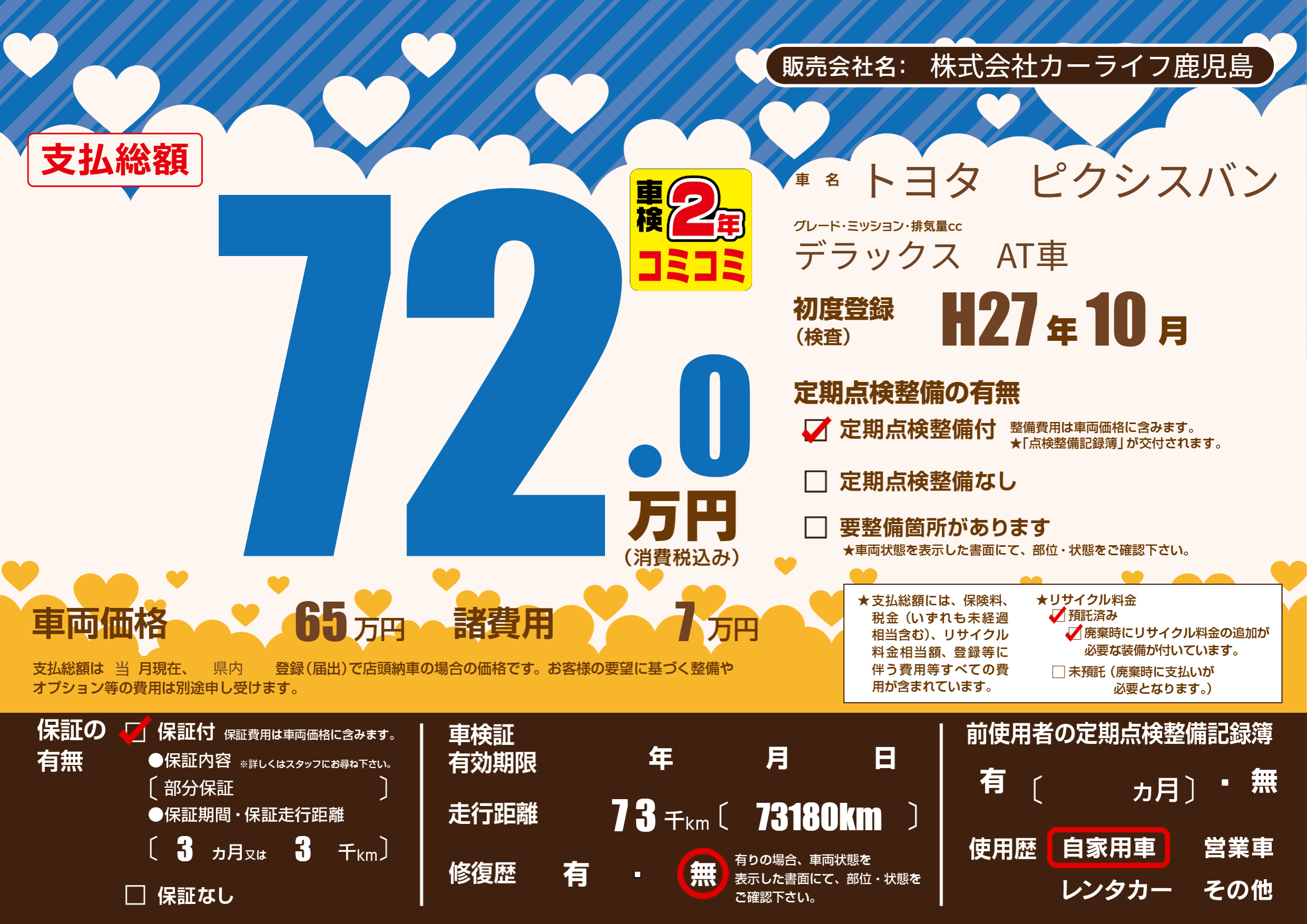 | 定期点検整備 | 定期点検整備あり | ||