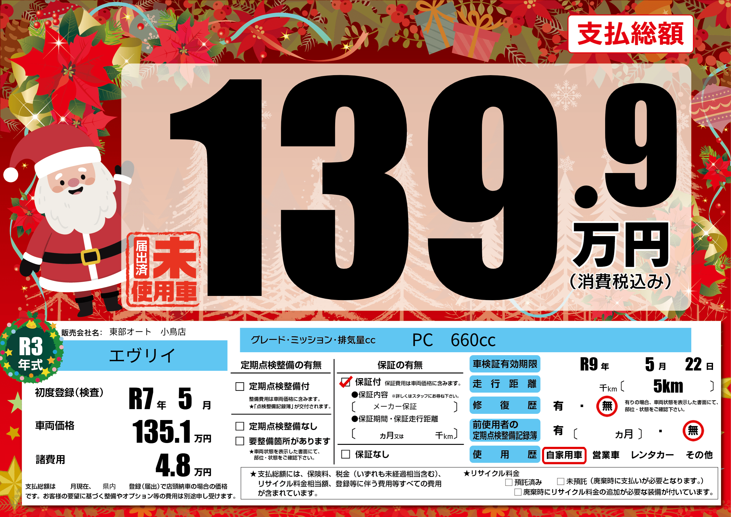 なし | 車検制限 | R9年5月22月 |