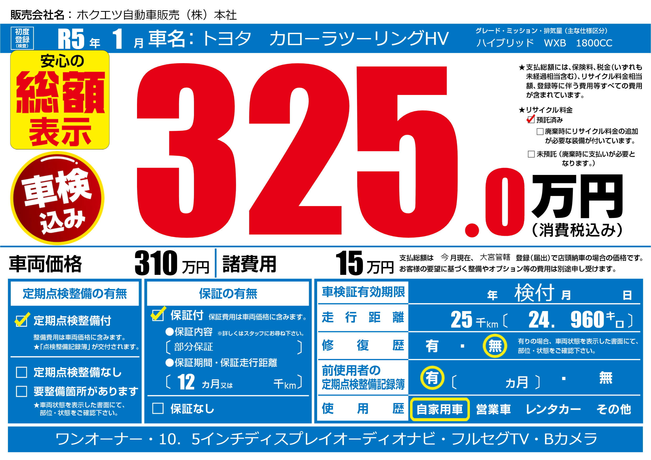 | 走行キロ | 2.5万km | 初年度登録 | R5年1月 |
