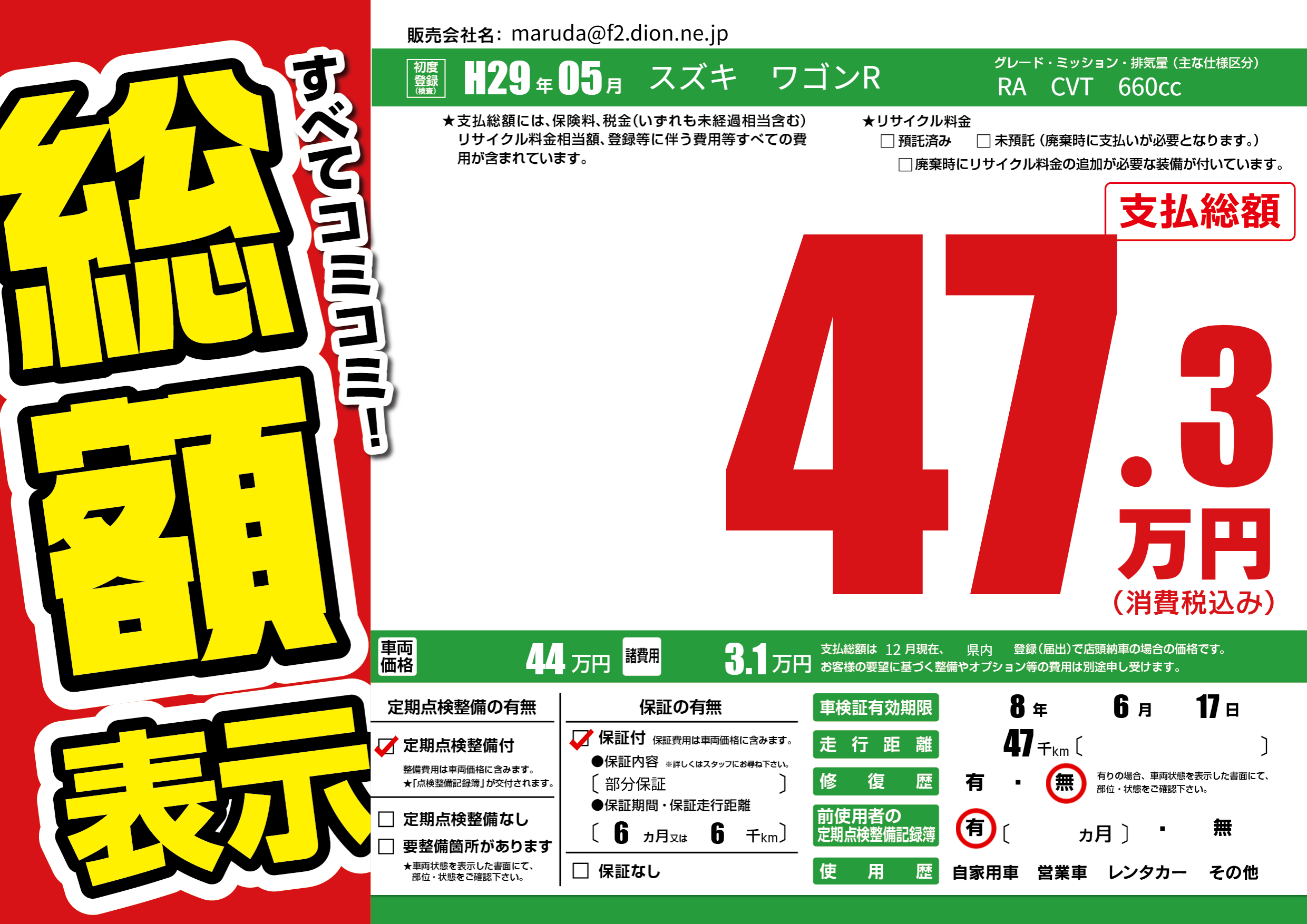 | 車名 | スズキ ワゴンR | グレード ミッション 排気量 |