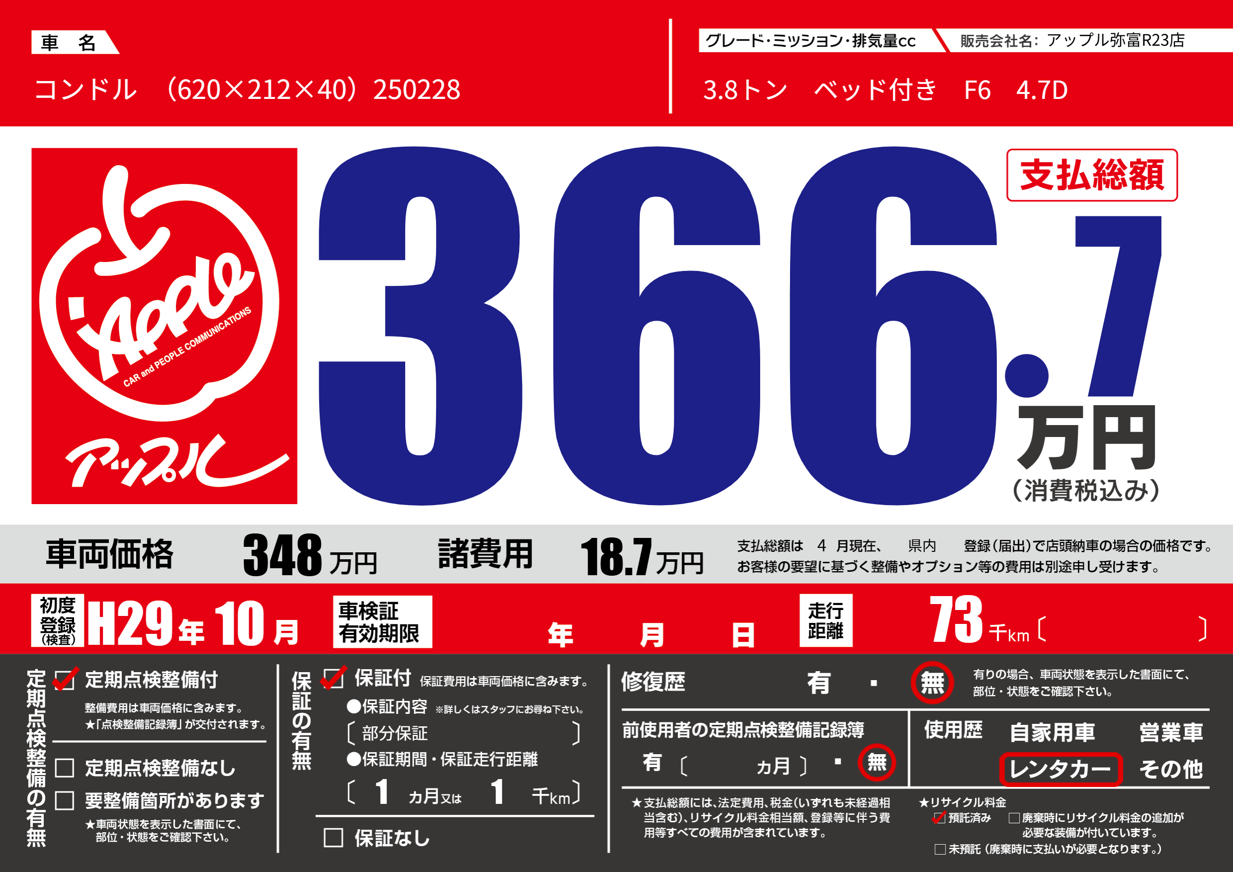 | 車名 | コンドル (620×212×40)250228 | グレード ミッション 排気量 |