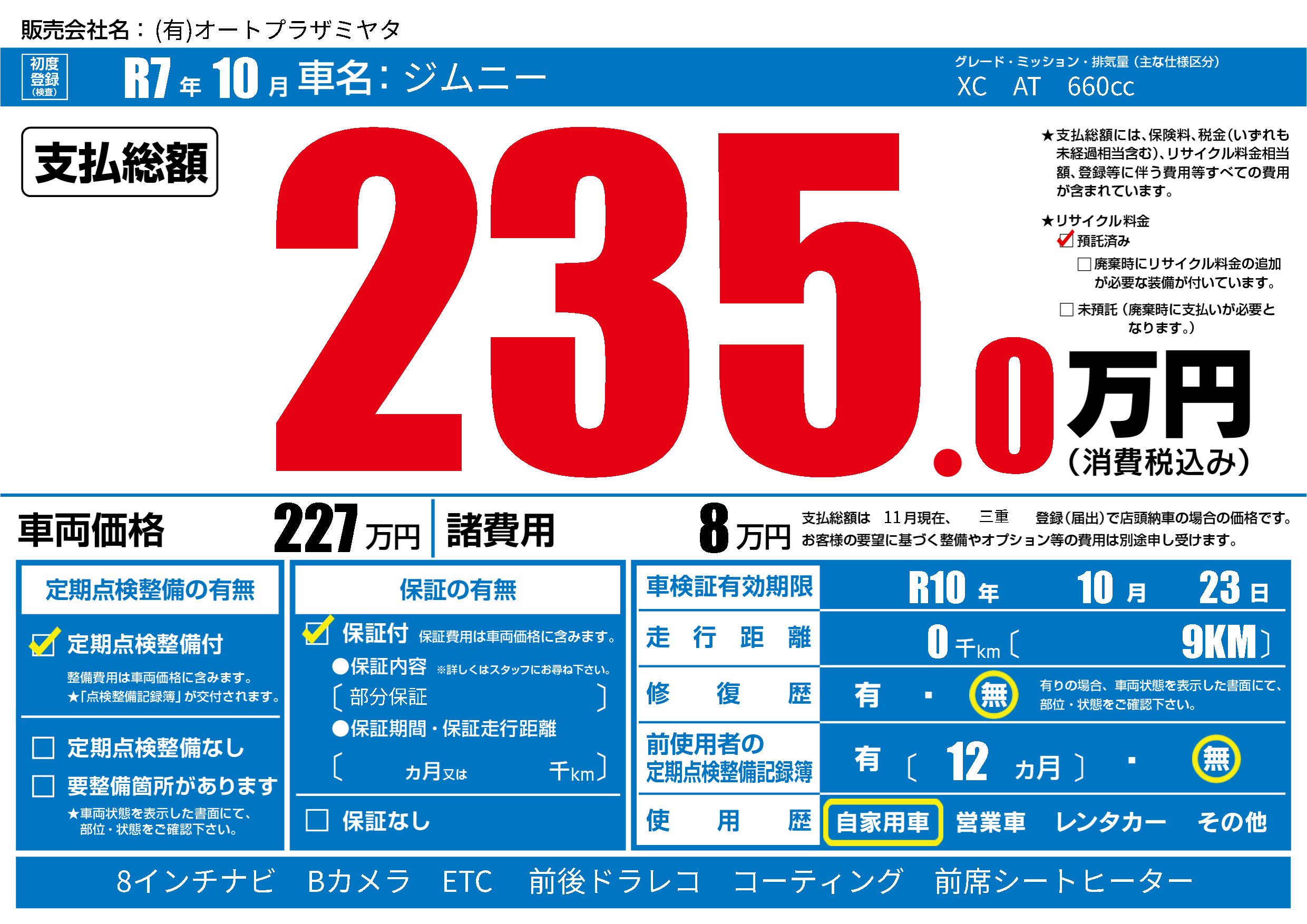 なし | 車検制限 | R10年10月23月 |