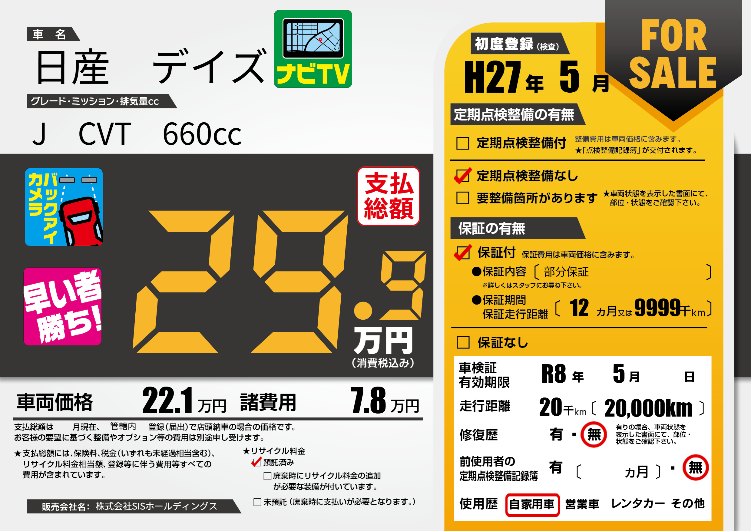 なし | 車検制限 | R8年5月---月 |
