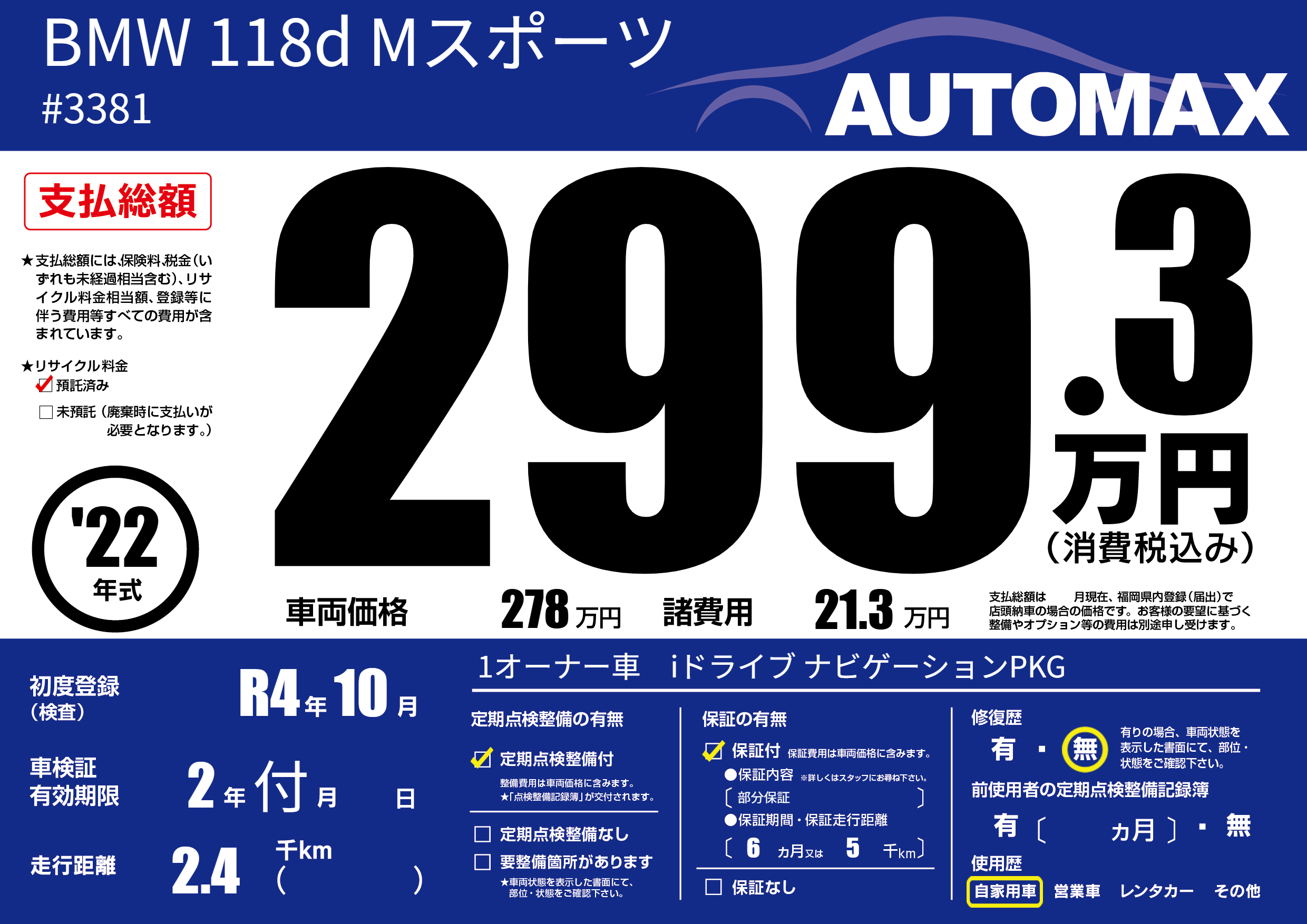 なし | 車検制限 | 2年付月---月 |