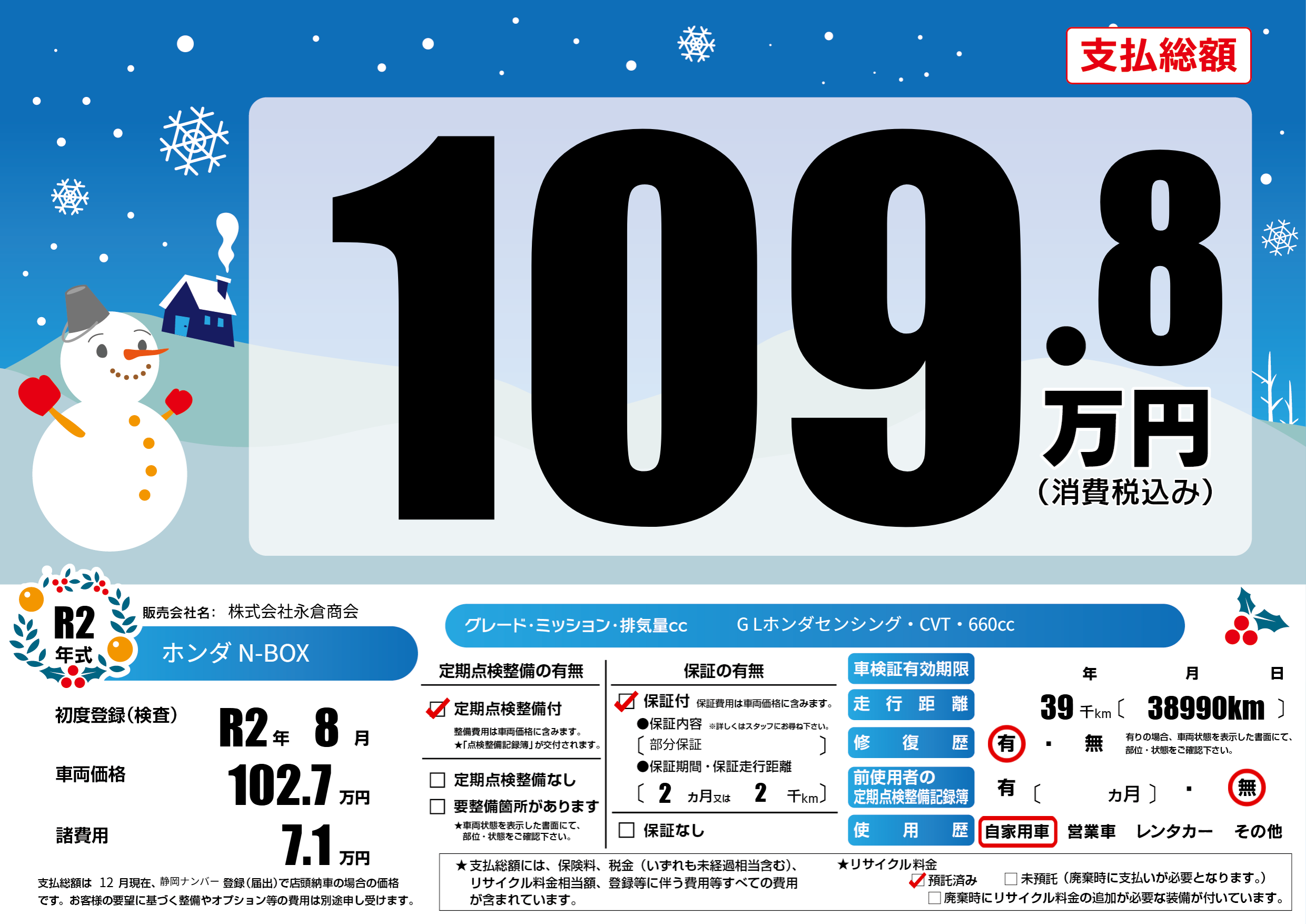 | 車名 | ホンダ N-BOX | グレード ミッション 排気量 |