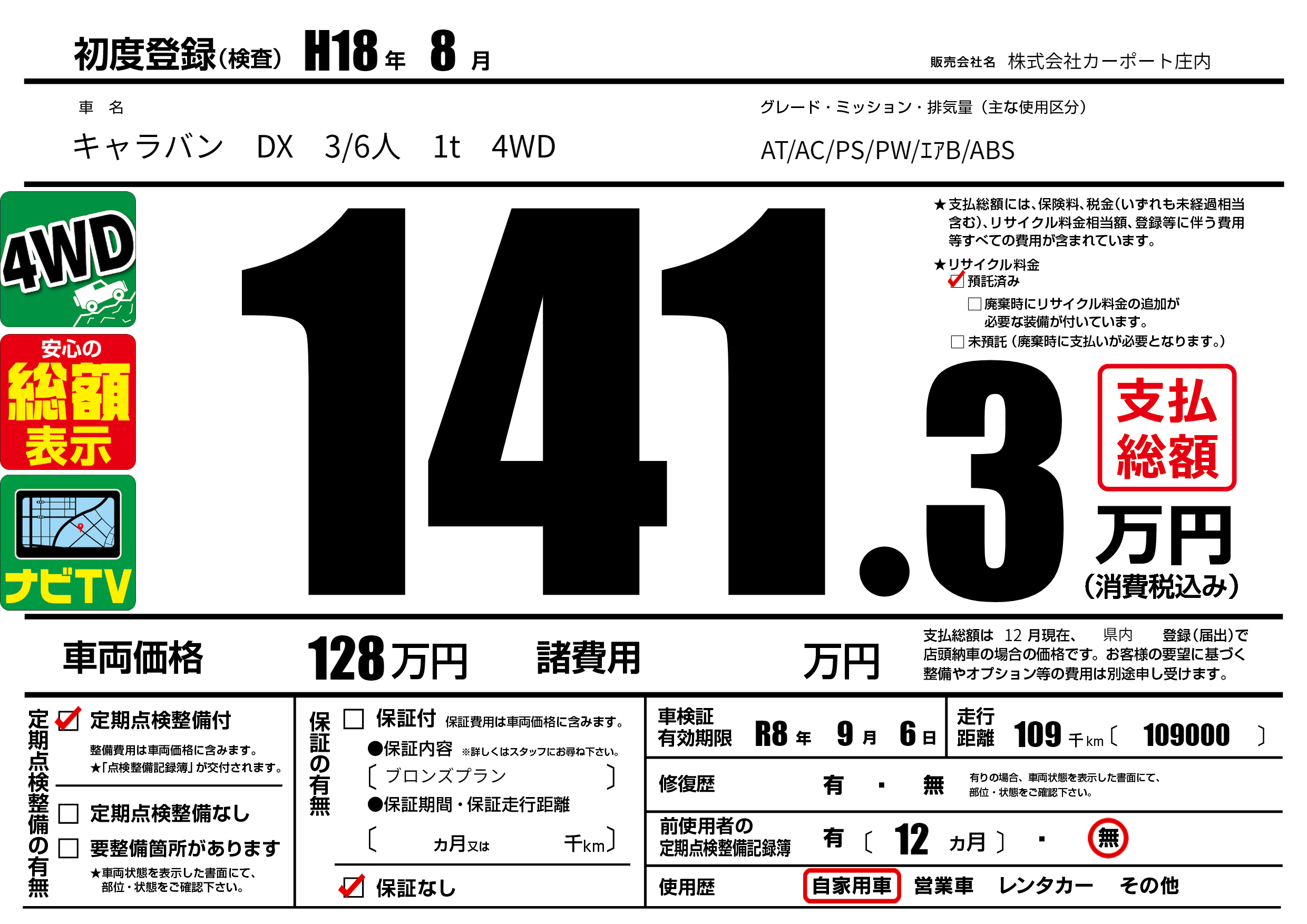 | 車検制限 | R8年 9月 6日 | ||