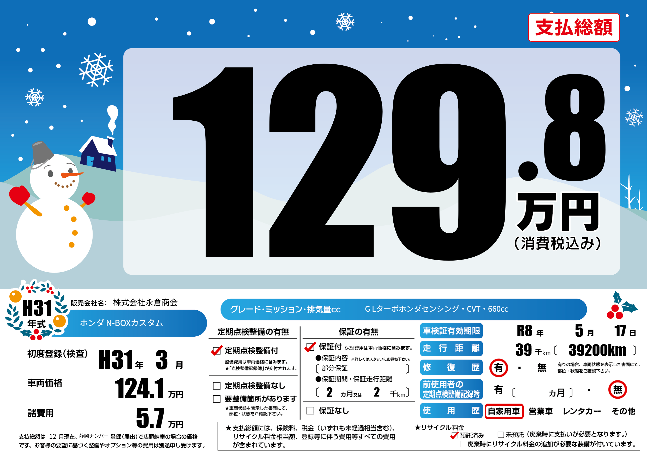 | 走行キロ | 3.9万km | 初年度登録 | H31年3月 |