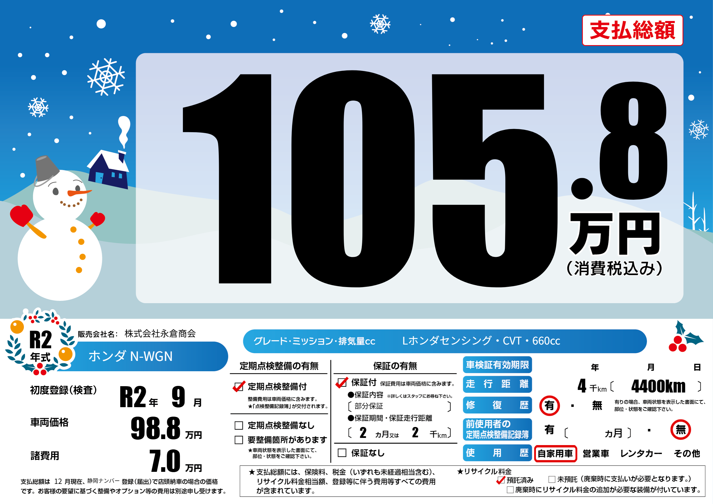 | 車名 | ホンダ N-WGN | グレード ミッション 排気量 |