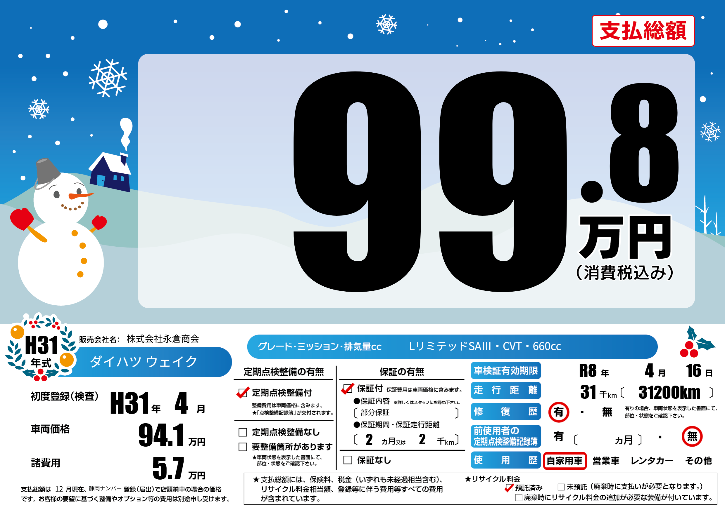 | 車検制限 | R8年 4月 16日 | ||