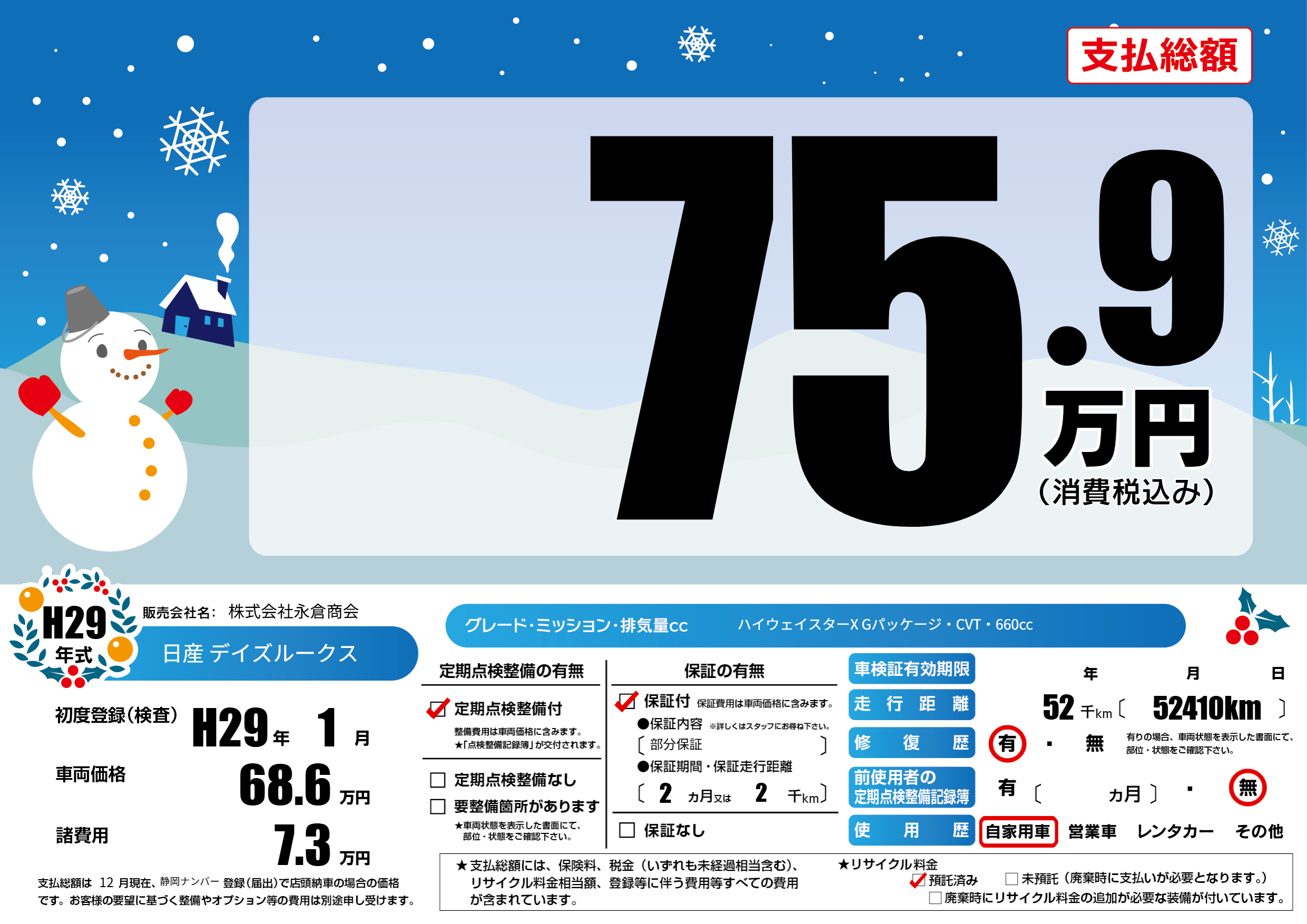 | 走行キロ | 5.2万km | 初年度登録 | H29年1月 |