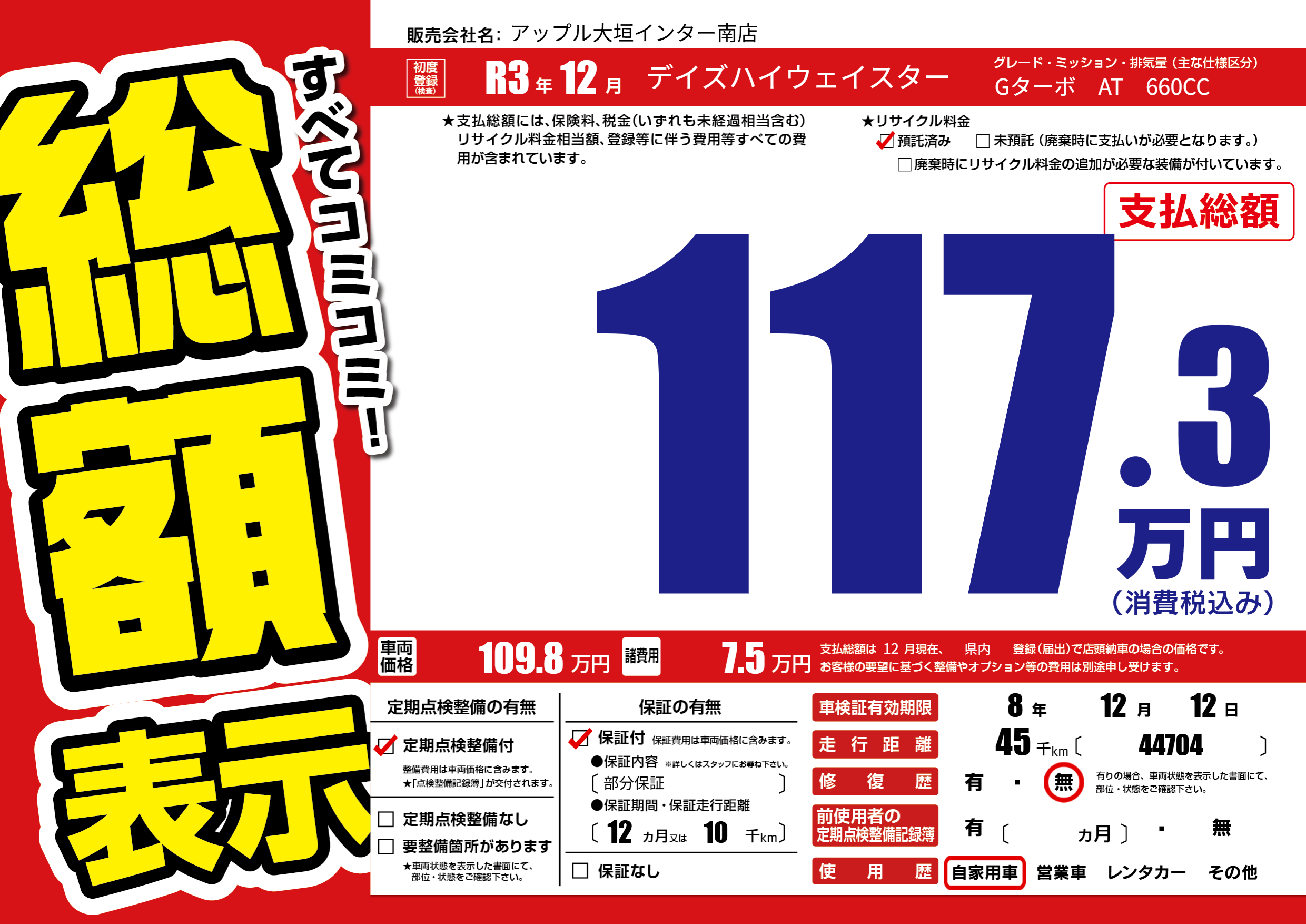 なし | 車検制限 | 8年12月12月 |