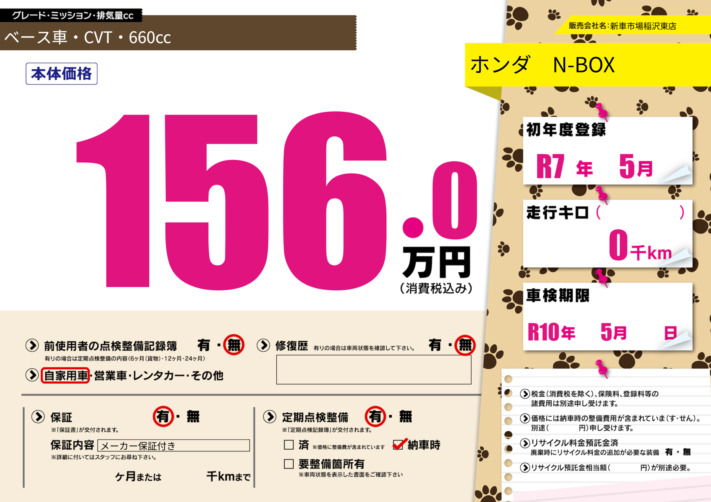 | 走行キロ | - | 初年度登録 | R7年5月 |