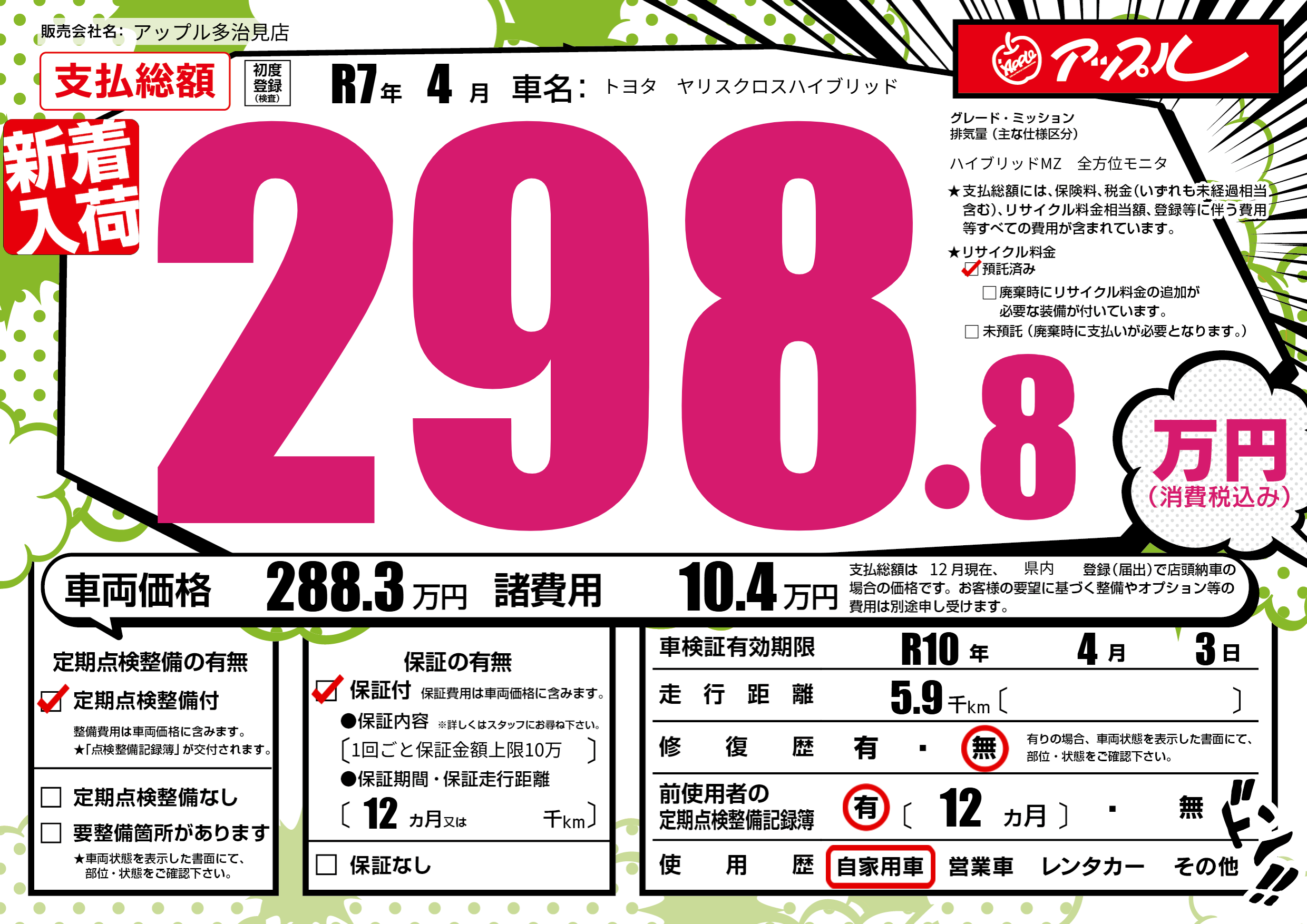 なし | 車検制限 | R10年4月3月 |