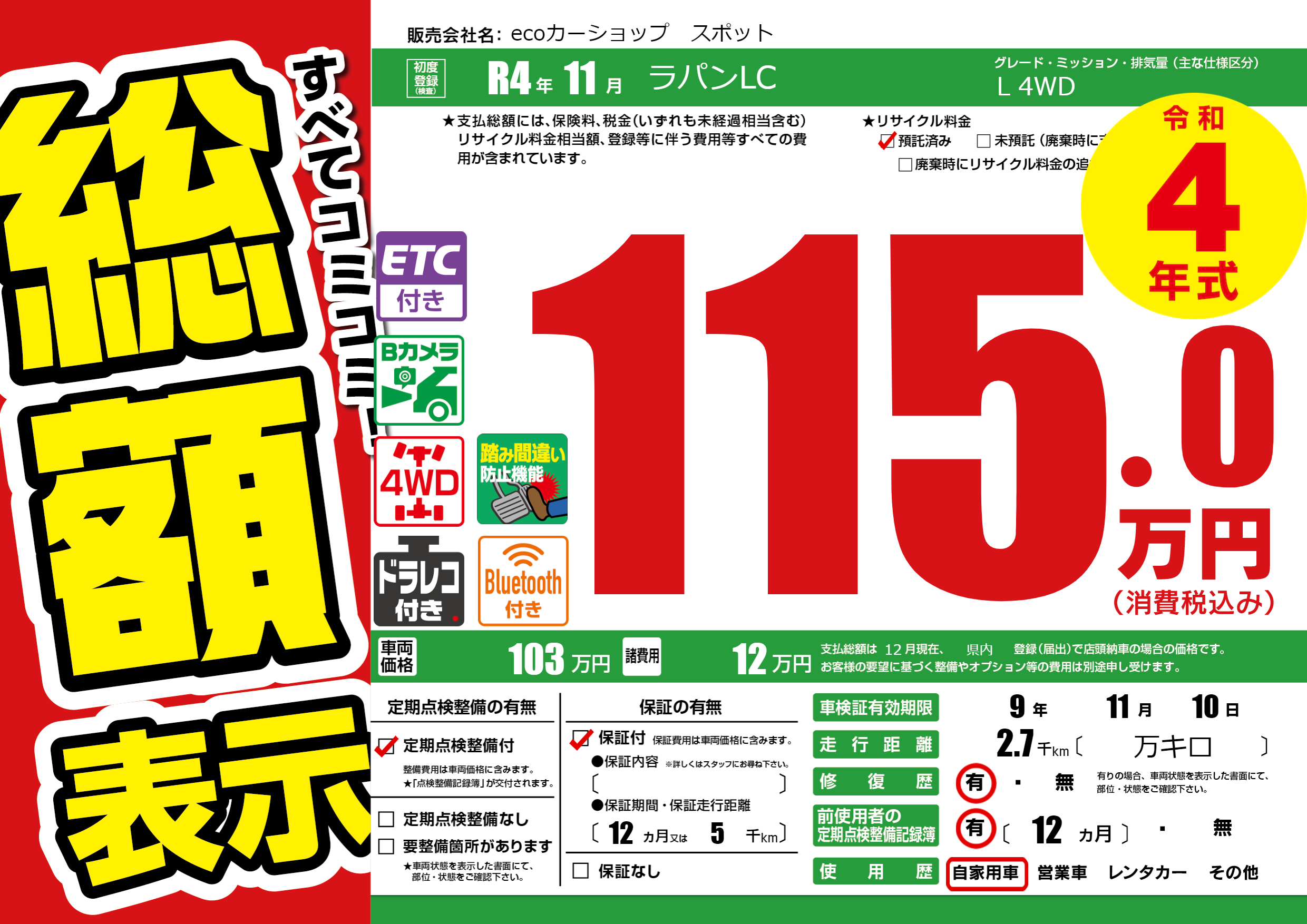 | 定期点検整備 | 定期点検整備あり | ||