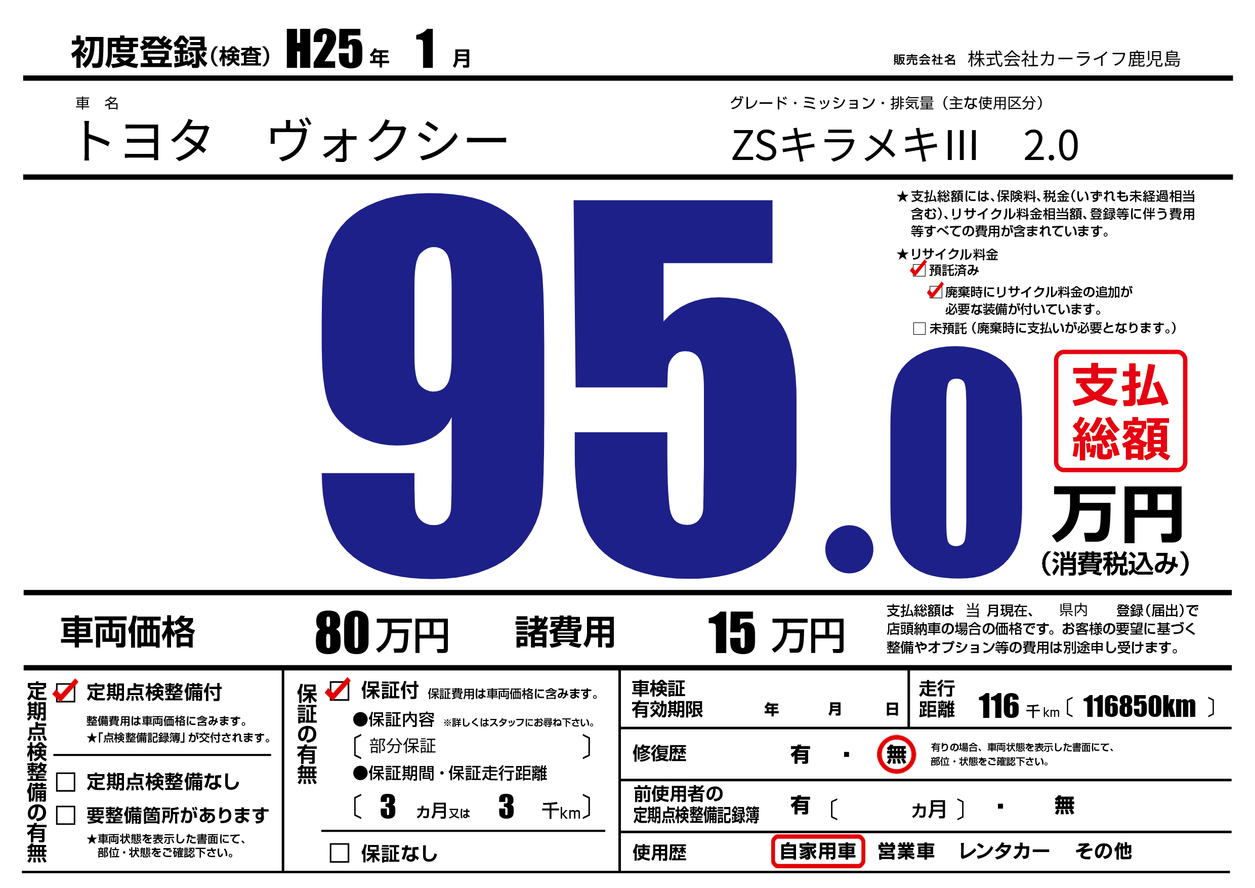 | 走行キロ | 11.6万km | 初年度登録 | H25年1月 |