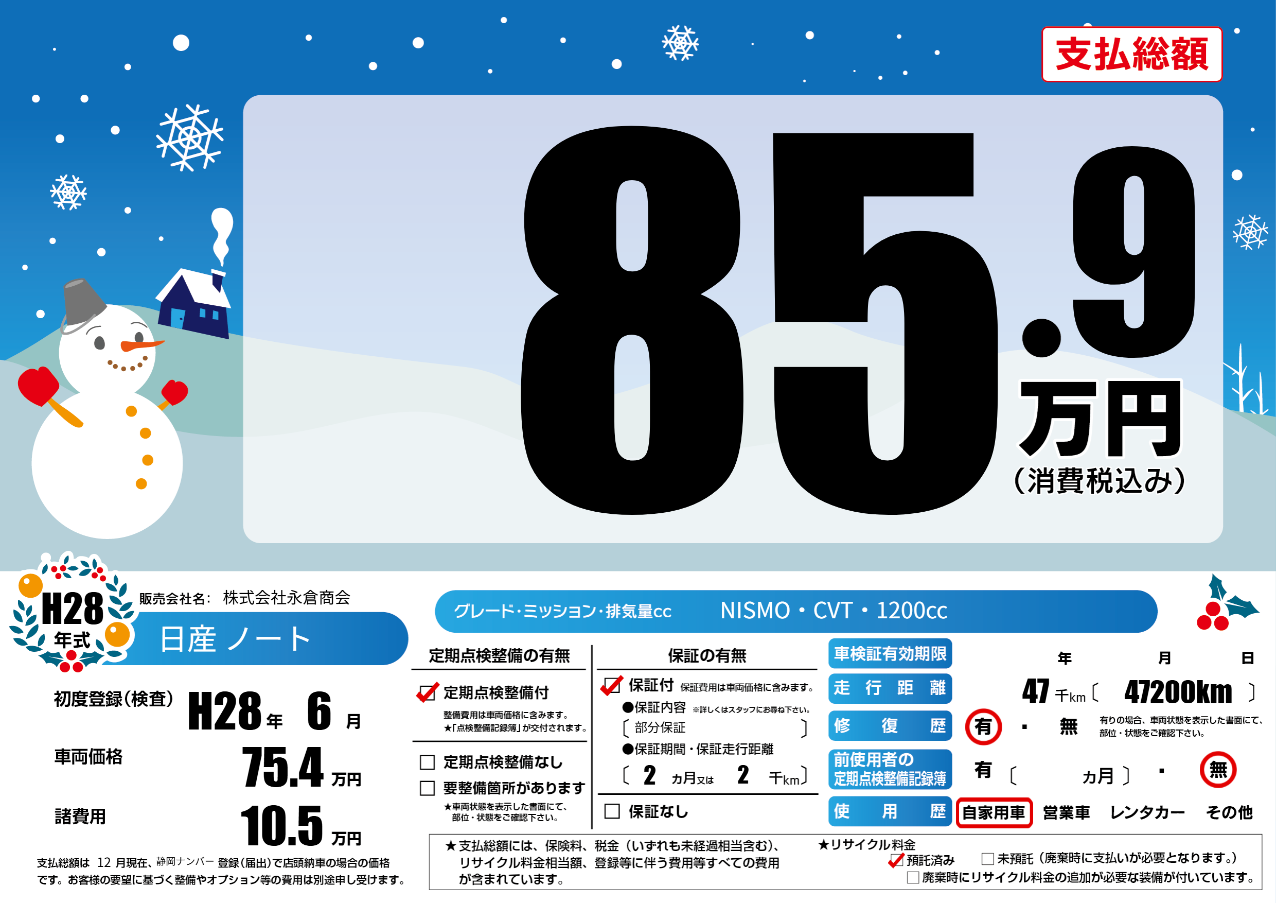 | 車名 | 日産 ノート | グレード ミッション 排気量 |