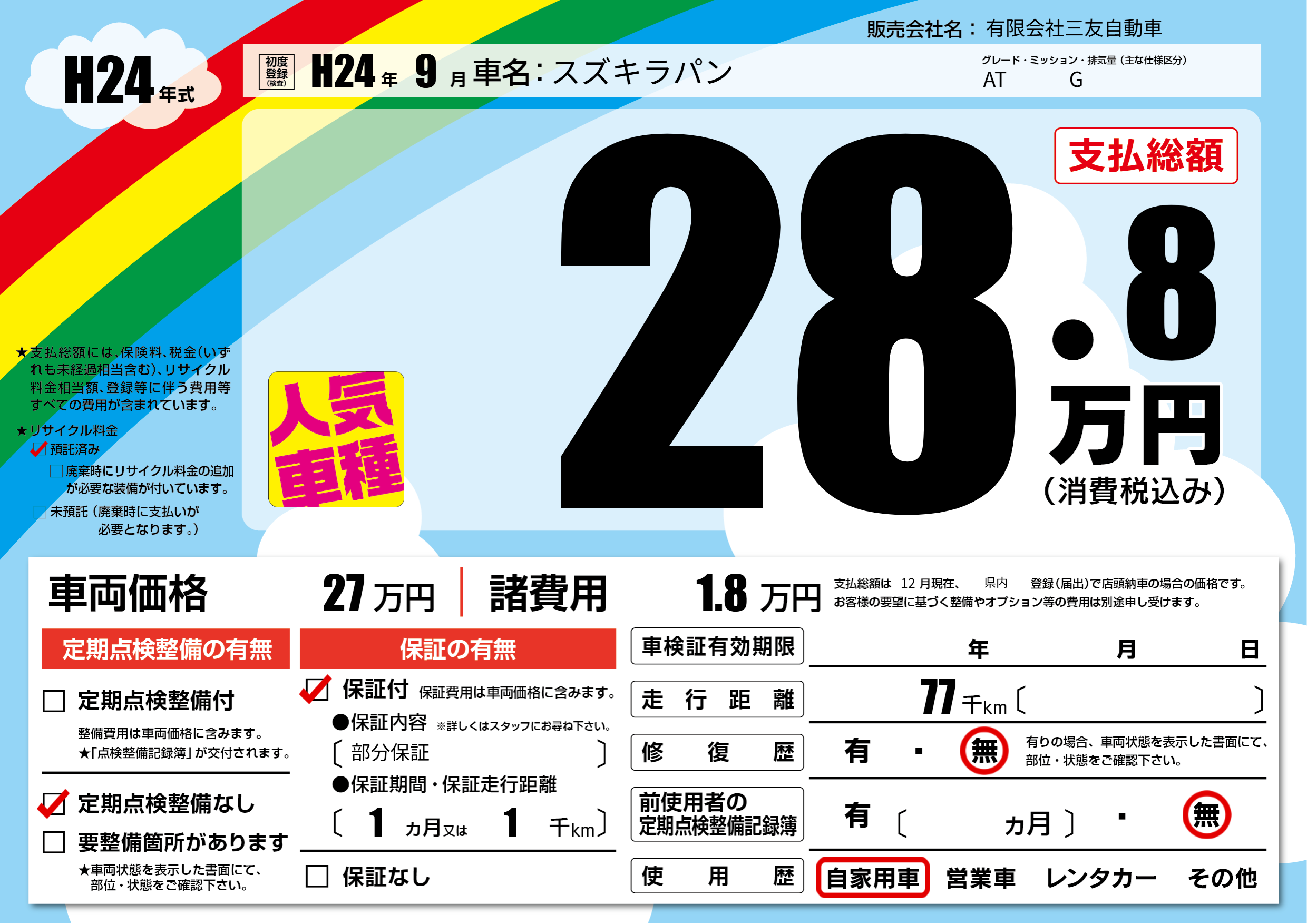 | 車名 | スズキラパン | グレード ミッション 排気量 |