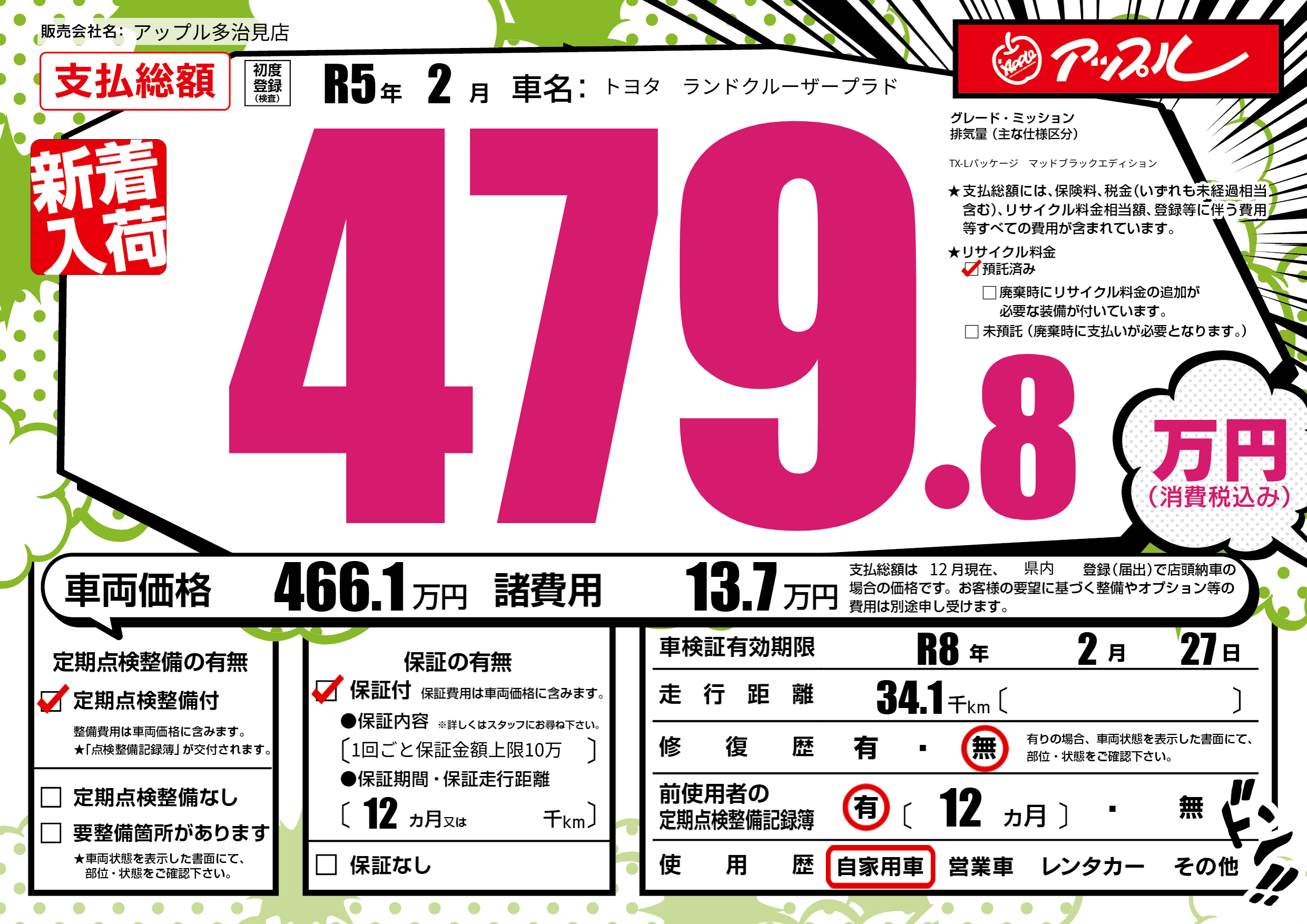 なし | 車検制限 | R8年2月27月 |