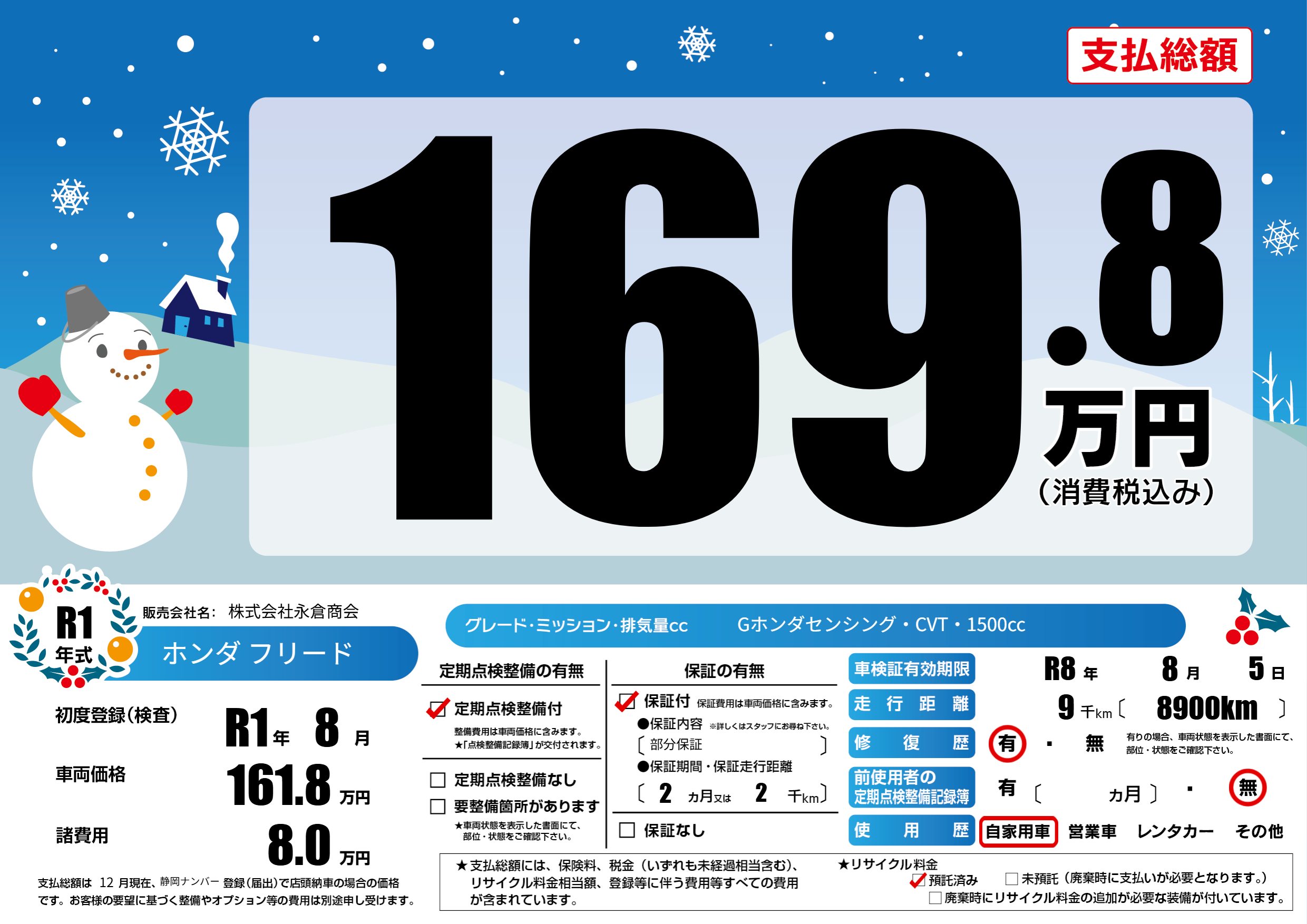 | 車名 | ホンダ フリード | グレード ミッション 排気量 |