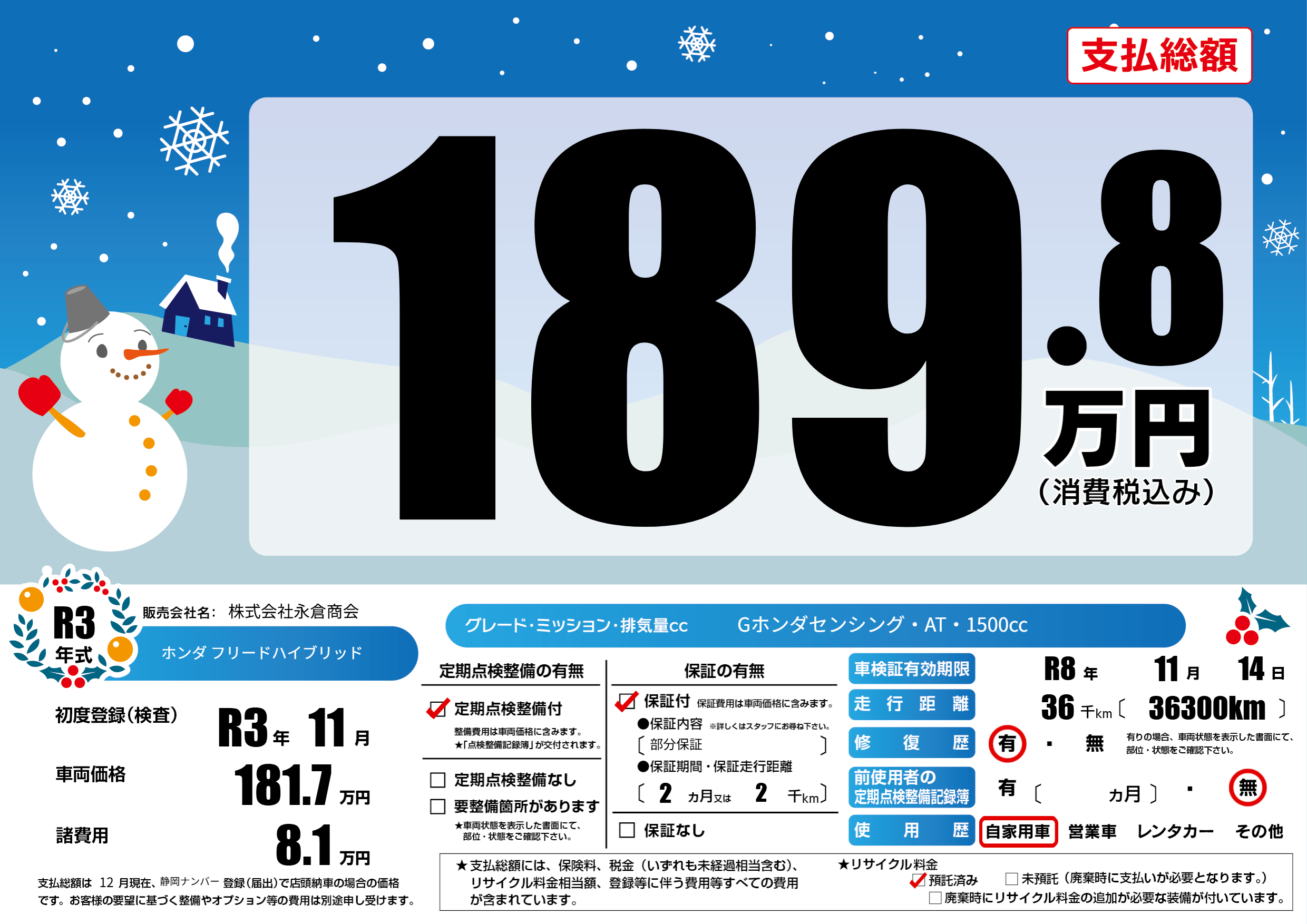 | 初年度登録 | R3年11月 | ||