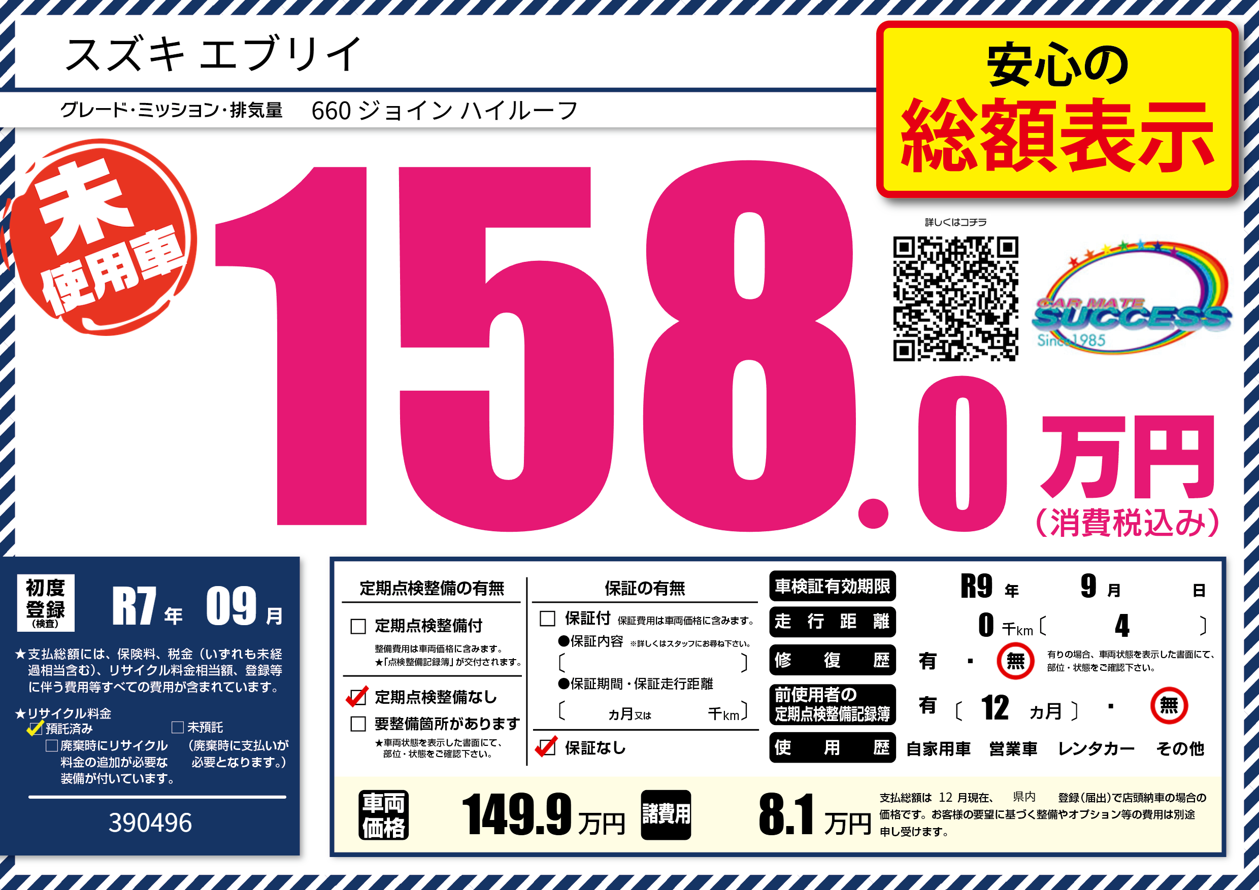| 走行キロ | - | 初年度登録 | R7年09月 |