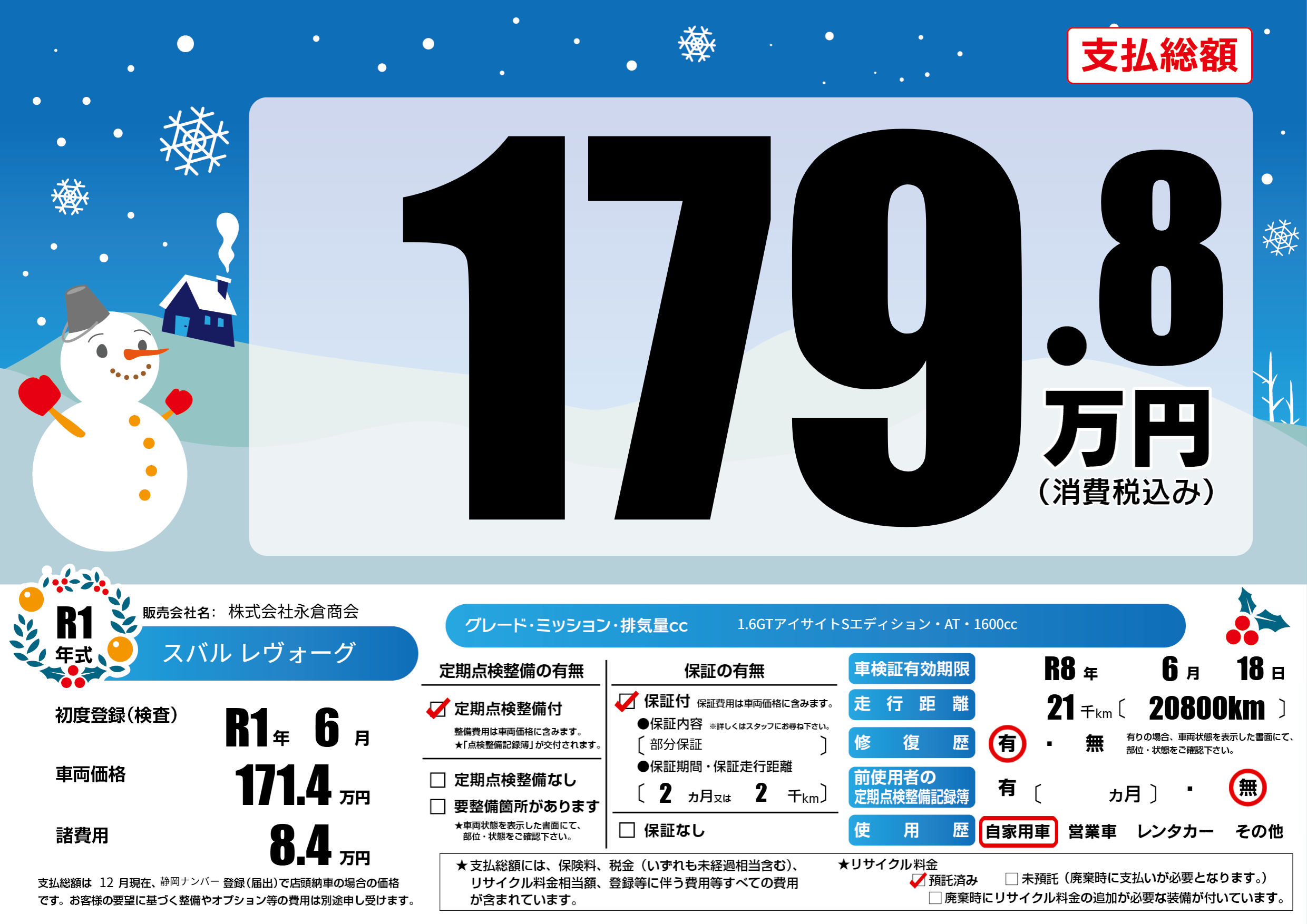 | 車名 | スバル レヴォーグ | グレード ミッション 排気量 |