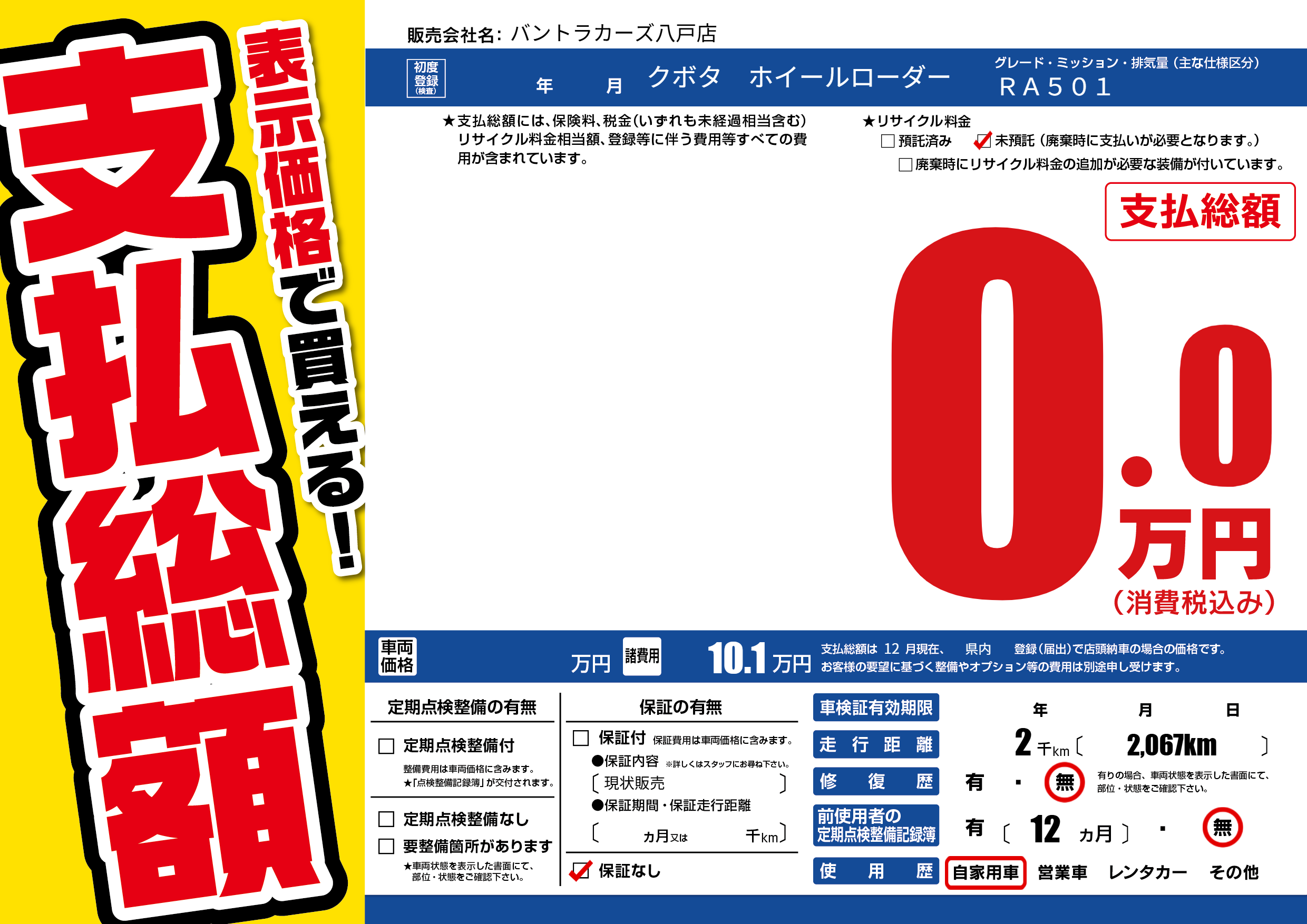保証なし 保証内容(現状販売) ---ヶ月または()千kmまで |