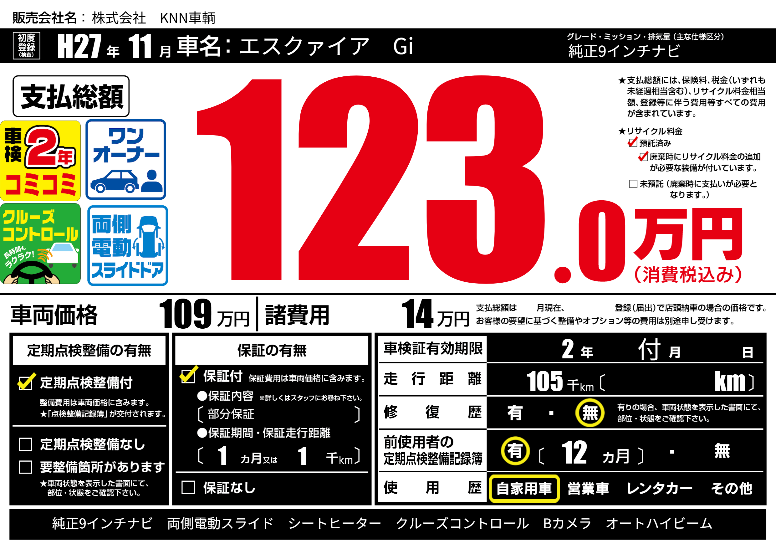 なし | 車検制限 | 2年付月---月 |