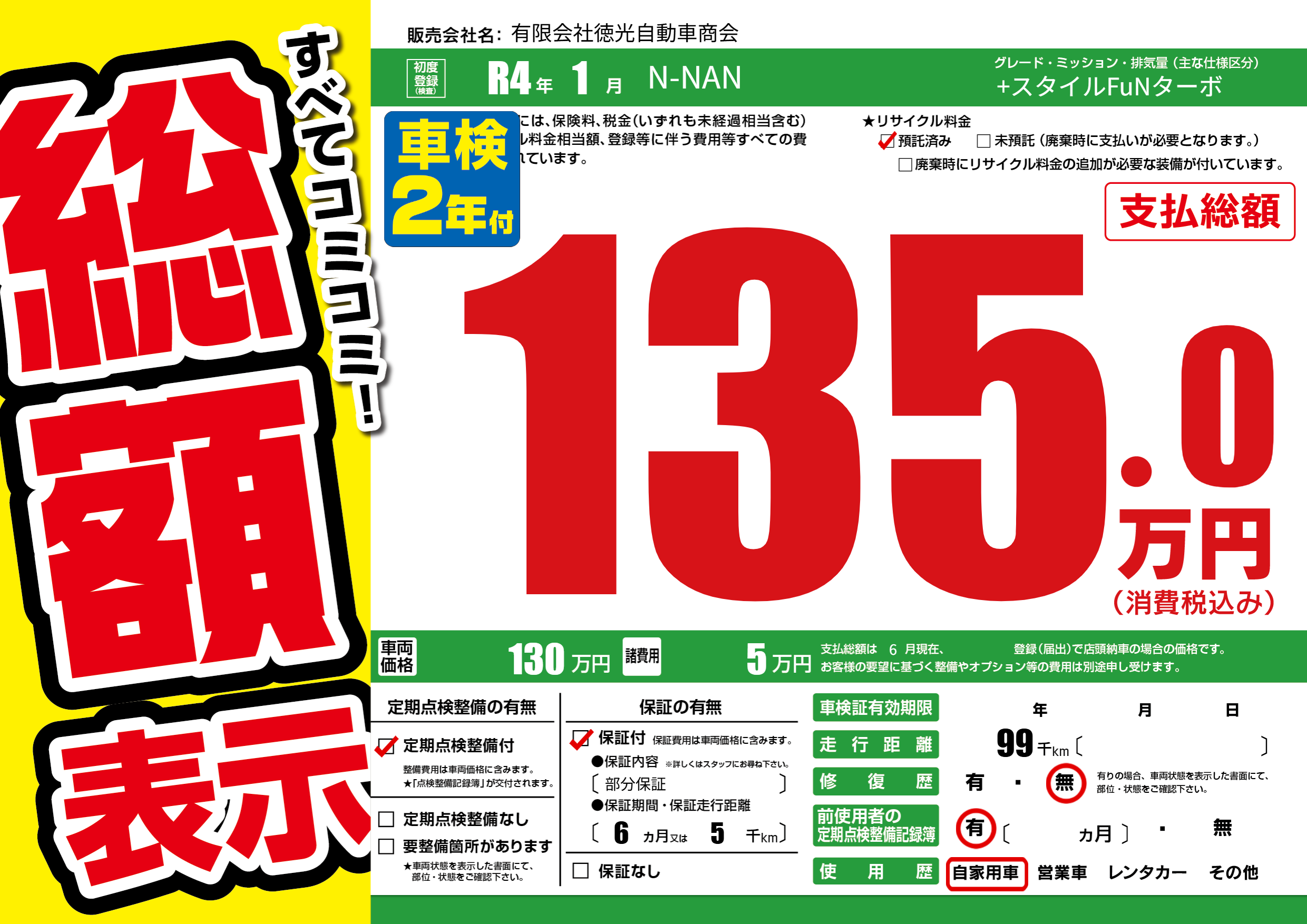 | 車名 | N-NAN | グレード ミッション 排気量 |