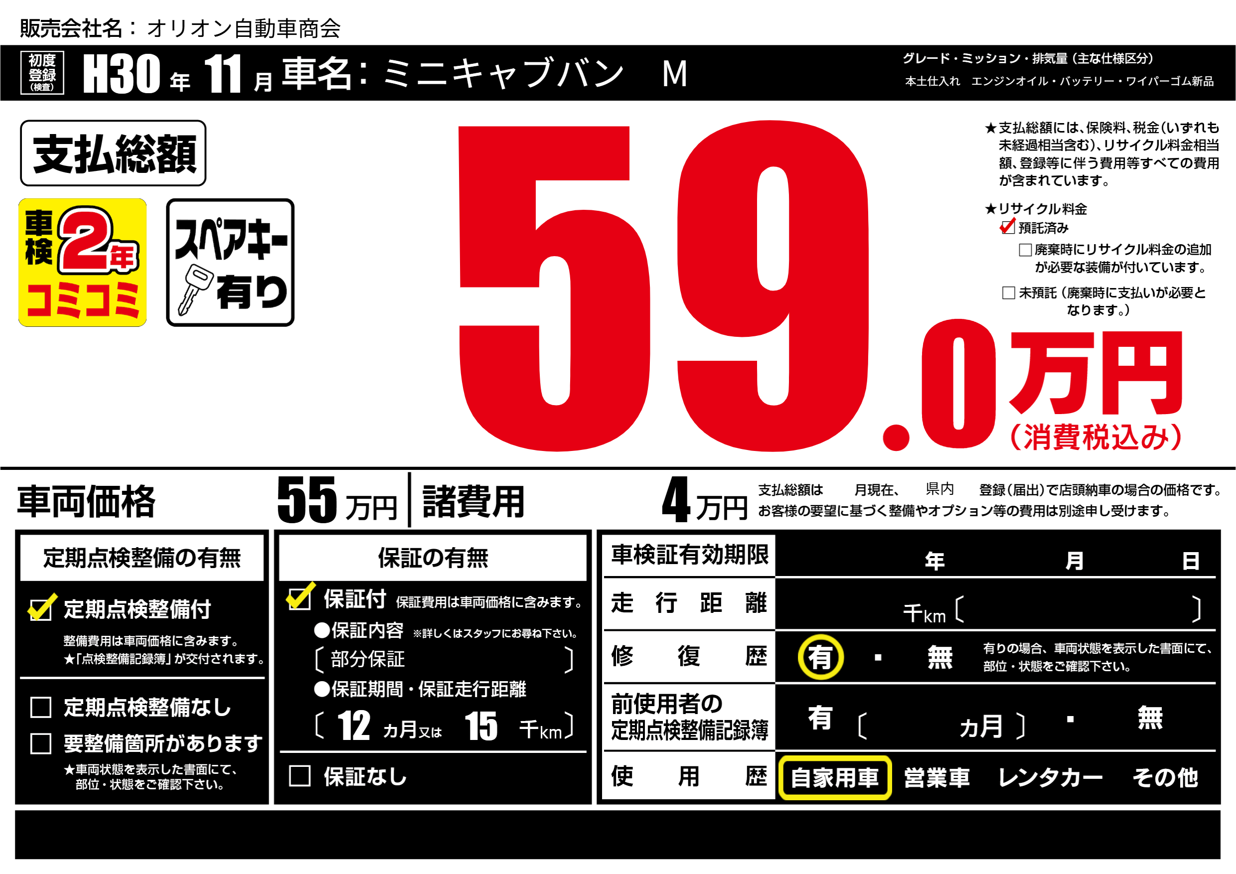 | 走行キロ | - | 初年度登録 | H30年11月 |