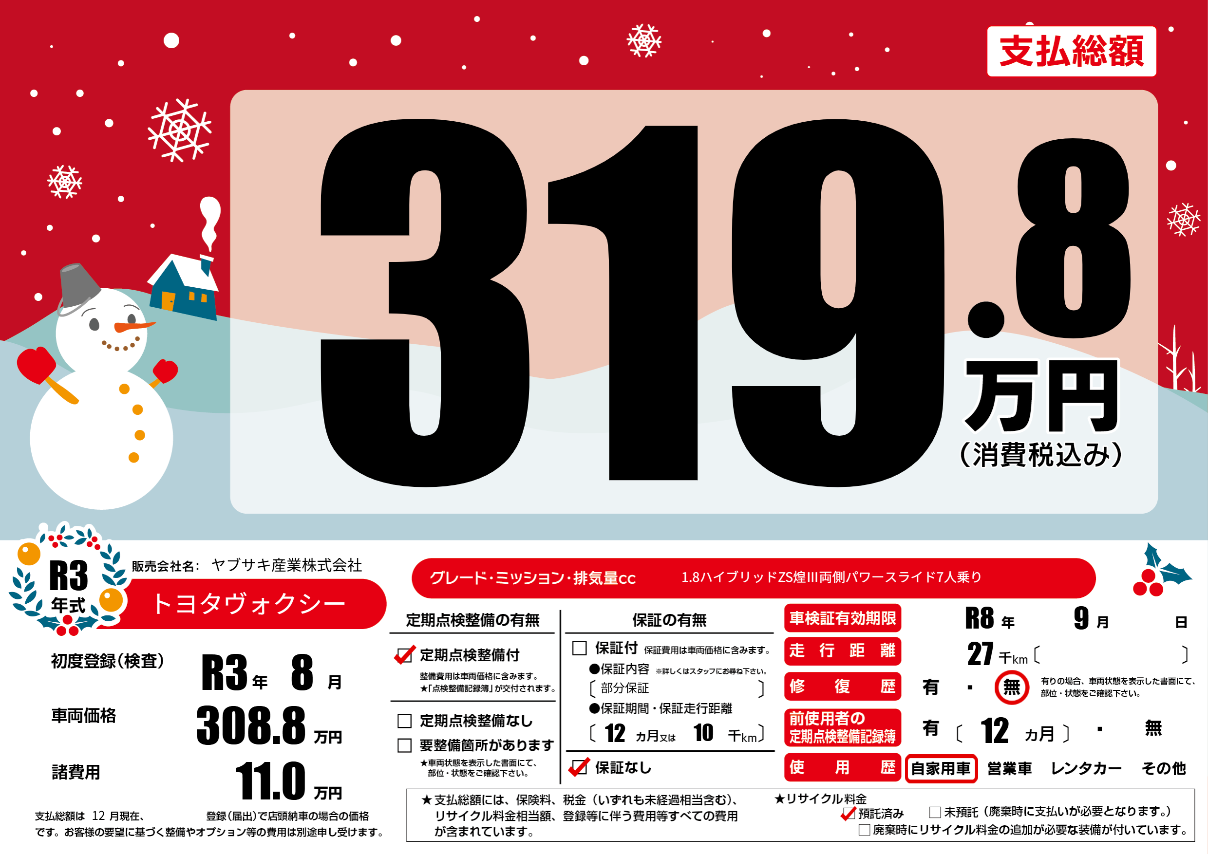 | 走行キロ | 2.7万km | 初年度登録 | R3年8月 |
