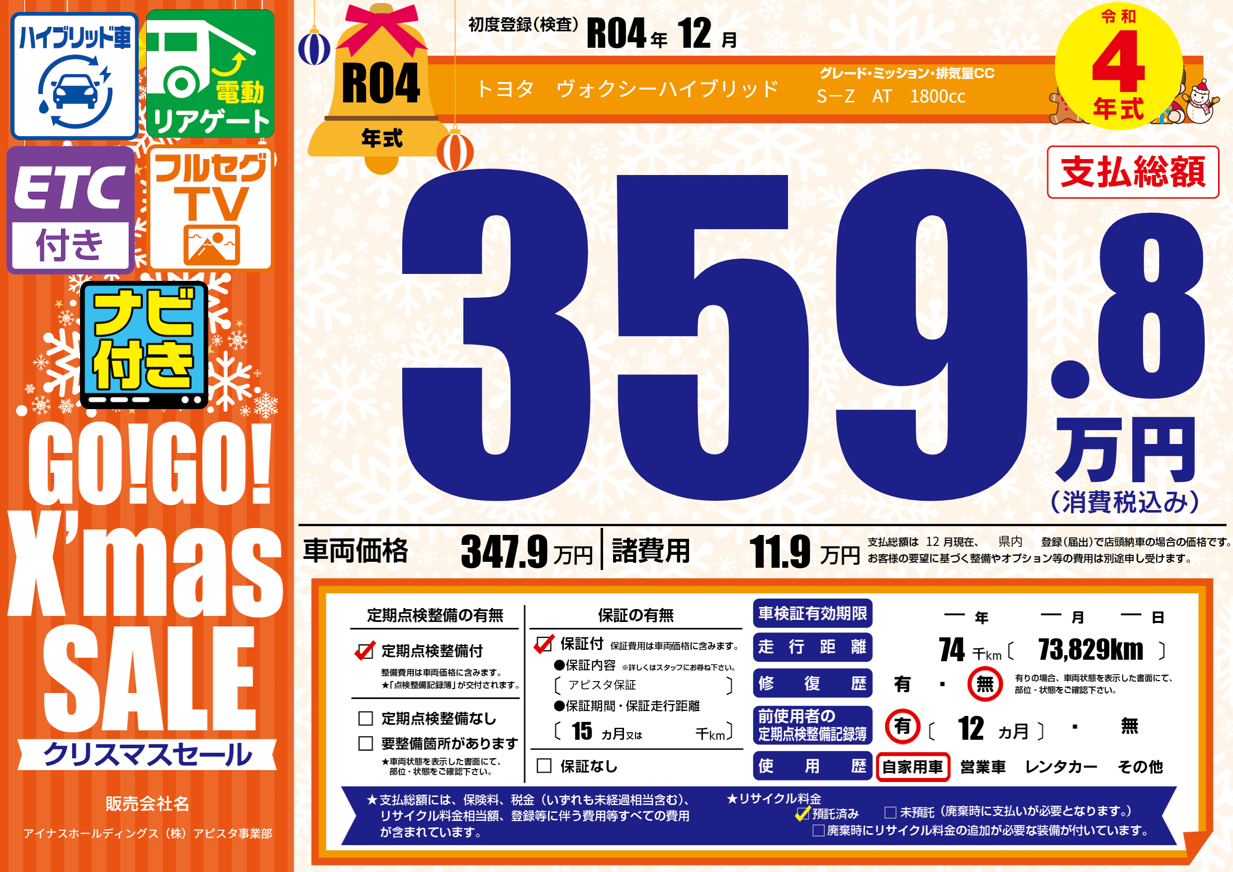 | 走行キロ | 7.4万km | 初年度登録 | R04年12月 |