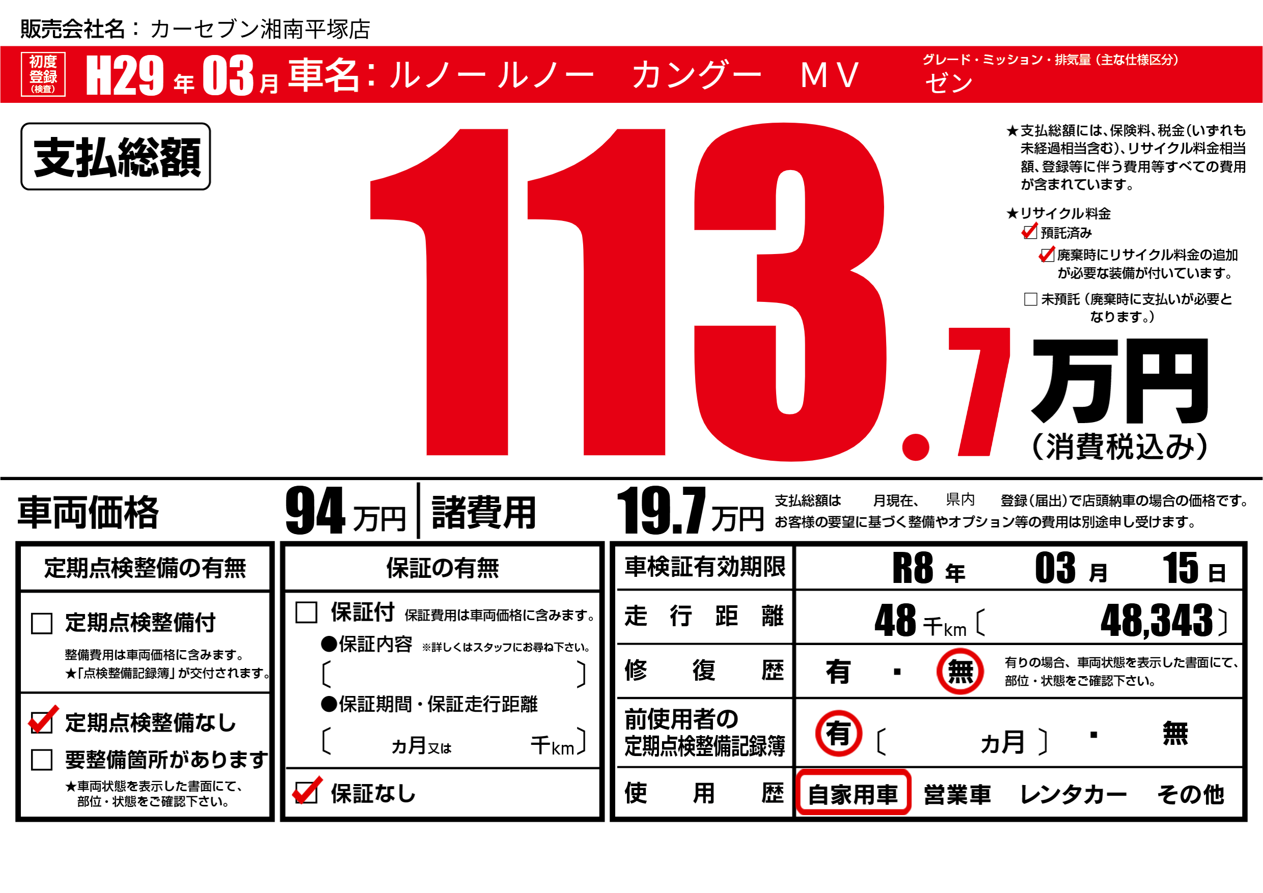 | 定期点検整備 | 定期点検整備なし | ||