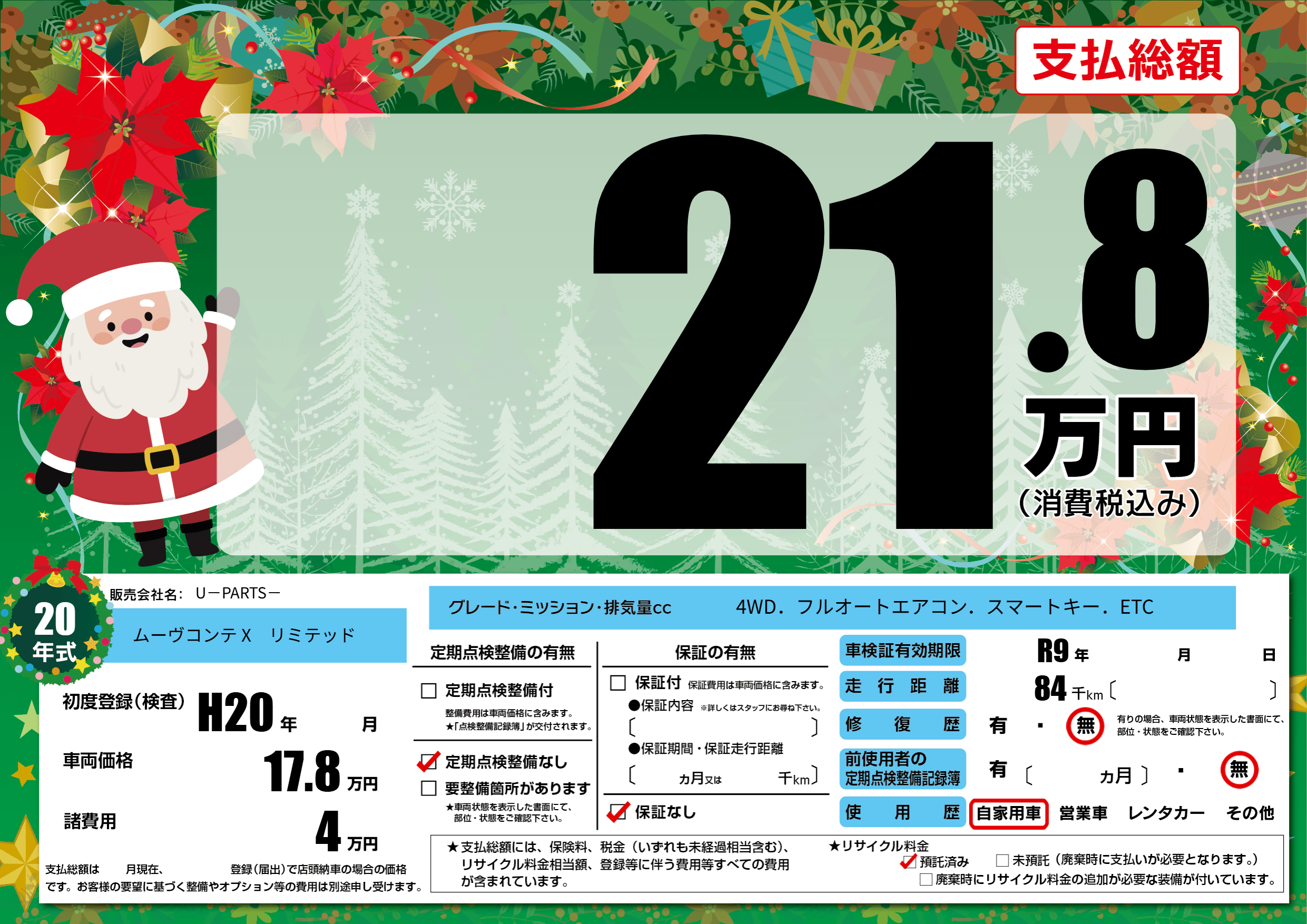 | 車名 | ムーヴコンテ X リミテッド | グレード ミッション 排気量 |