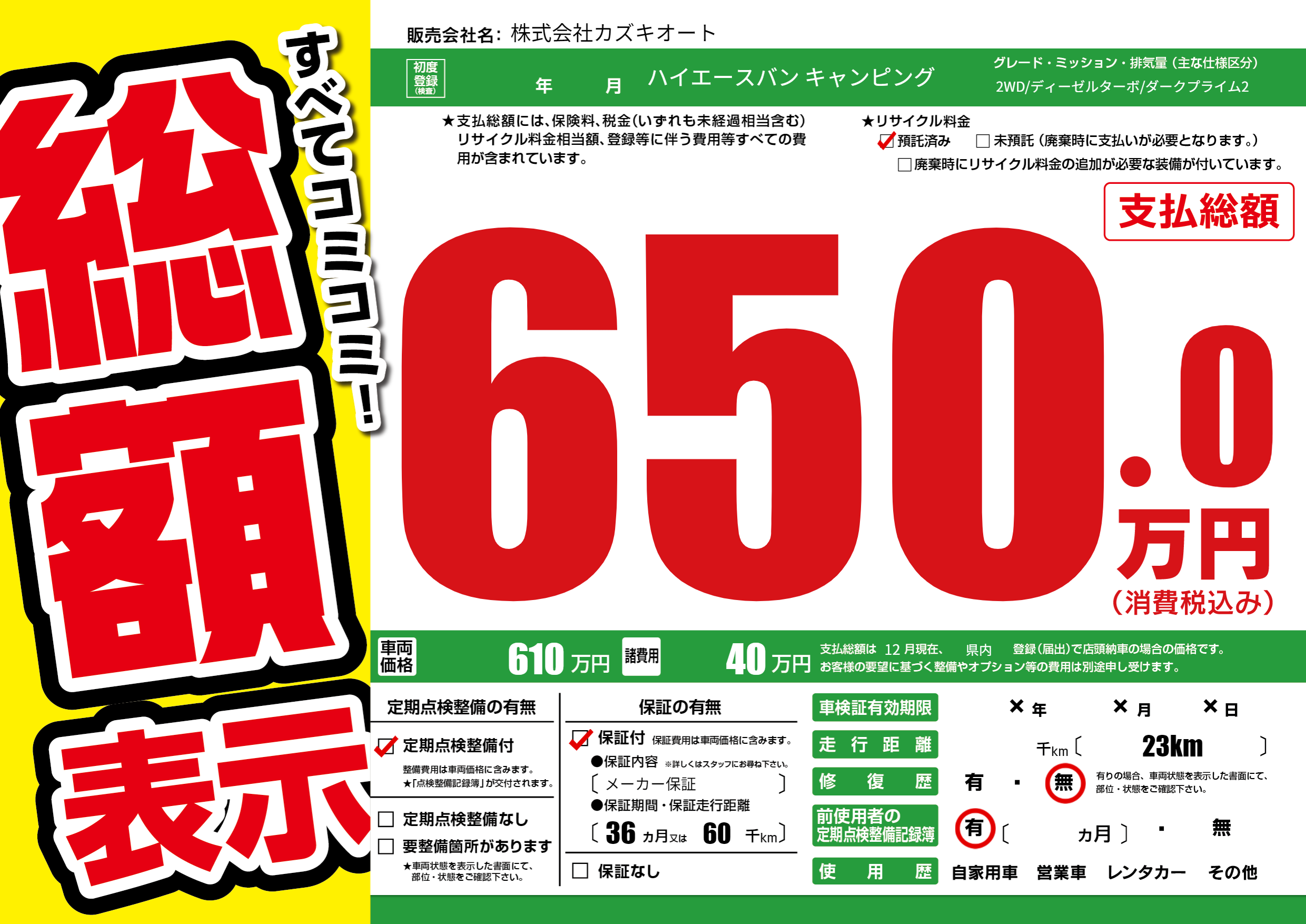 | 定期点検整備 | 定期点検整備あり | ||