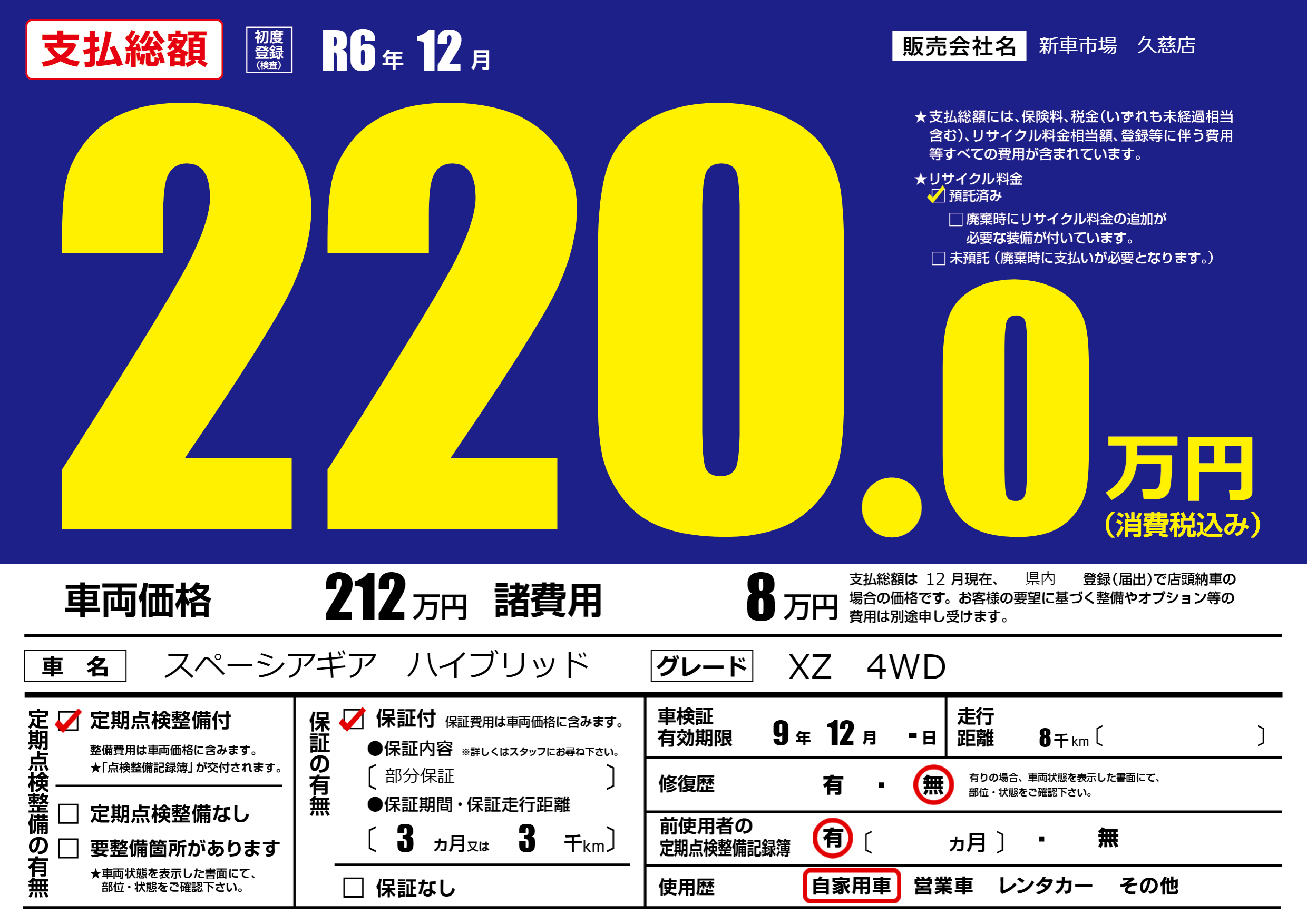 なし | 車検制限 | 9年12月-月 |