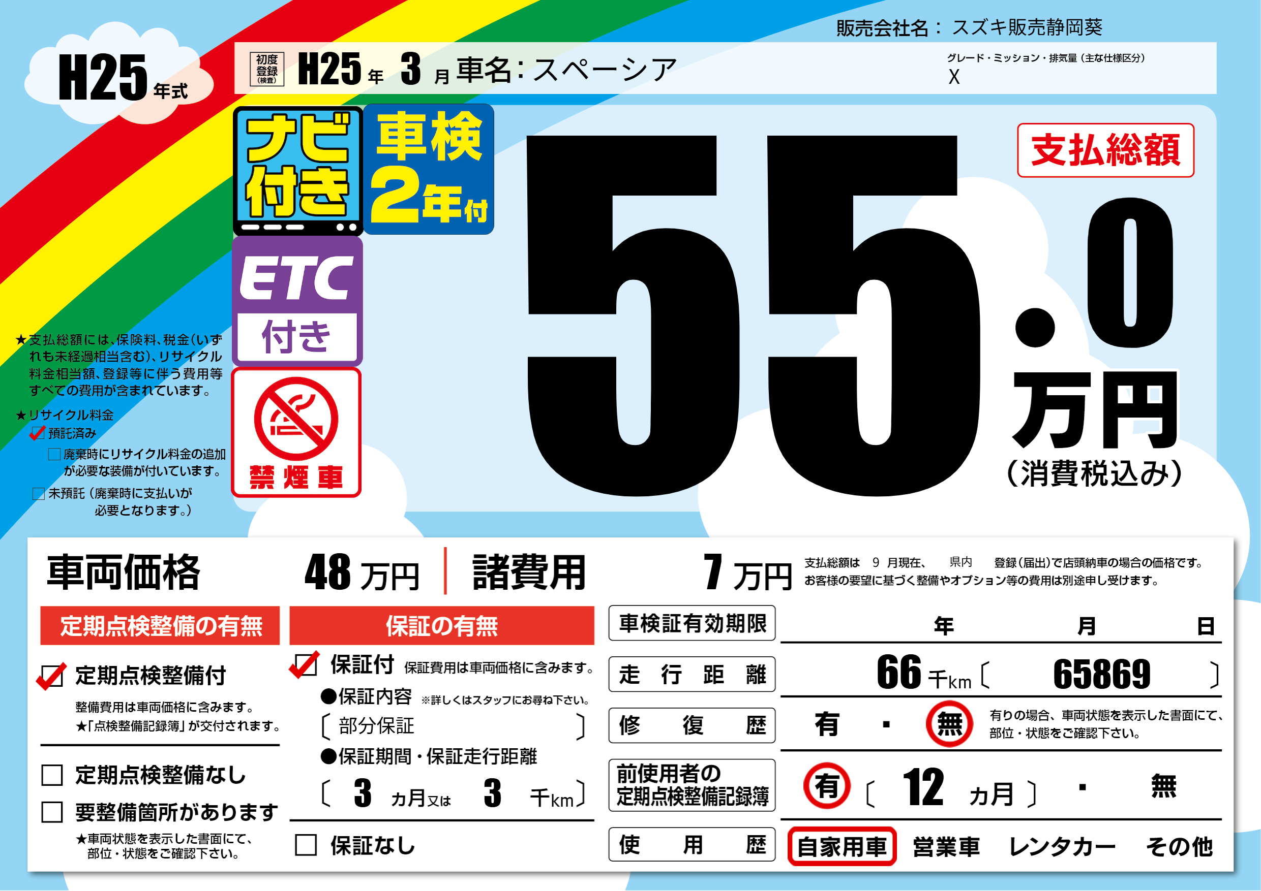 | 走行キロ | 6.6万km | 初年度登録 | H25年3月 |