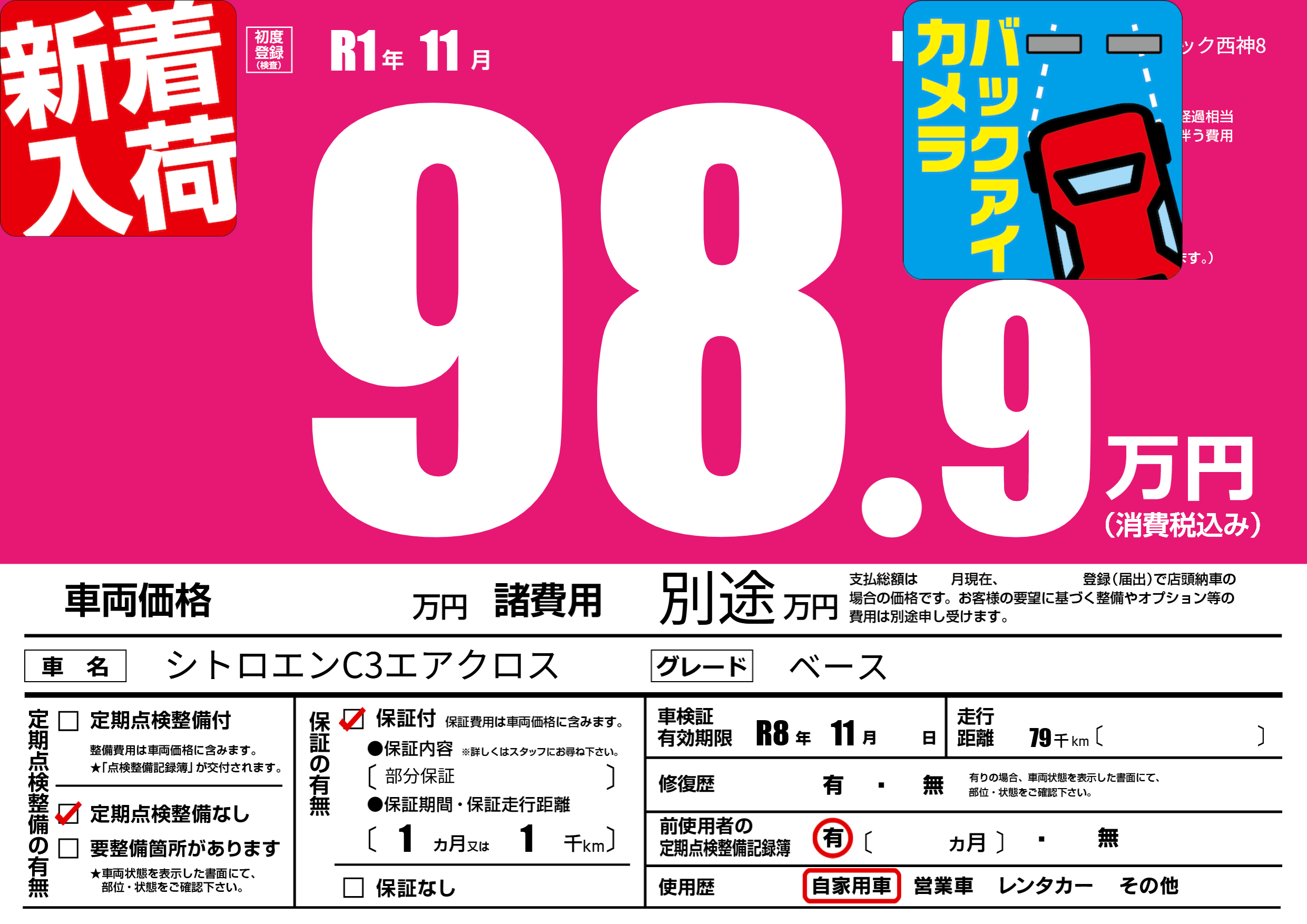| 車検制限 | R8年 11月 - 日 | ||