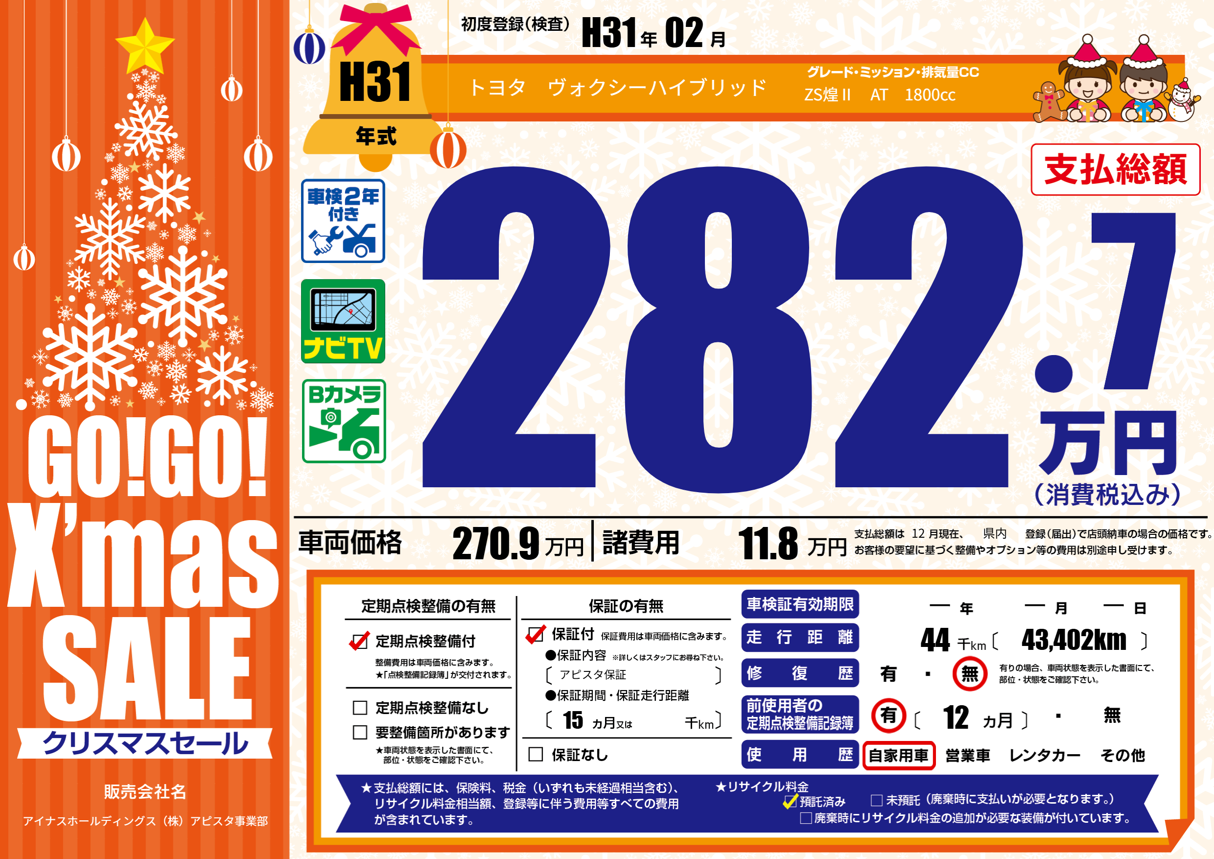 | 車名 | トヨタ ヴォクシーハイブリッド | グレード ミッション 排気量 |