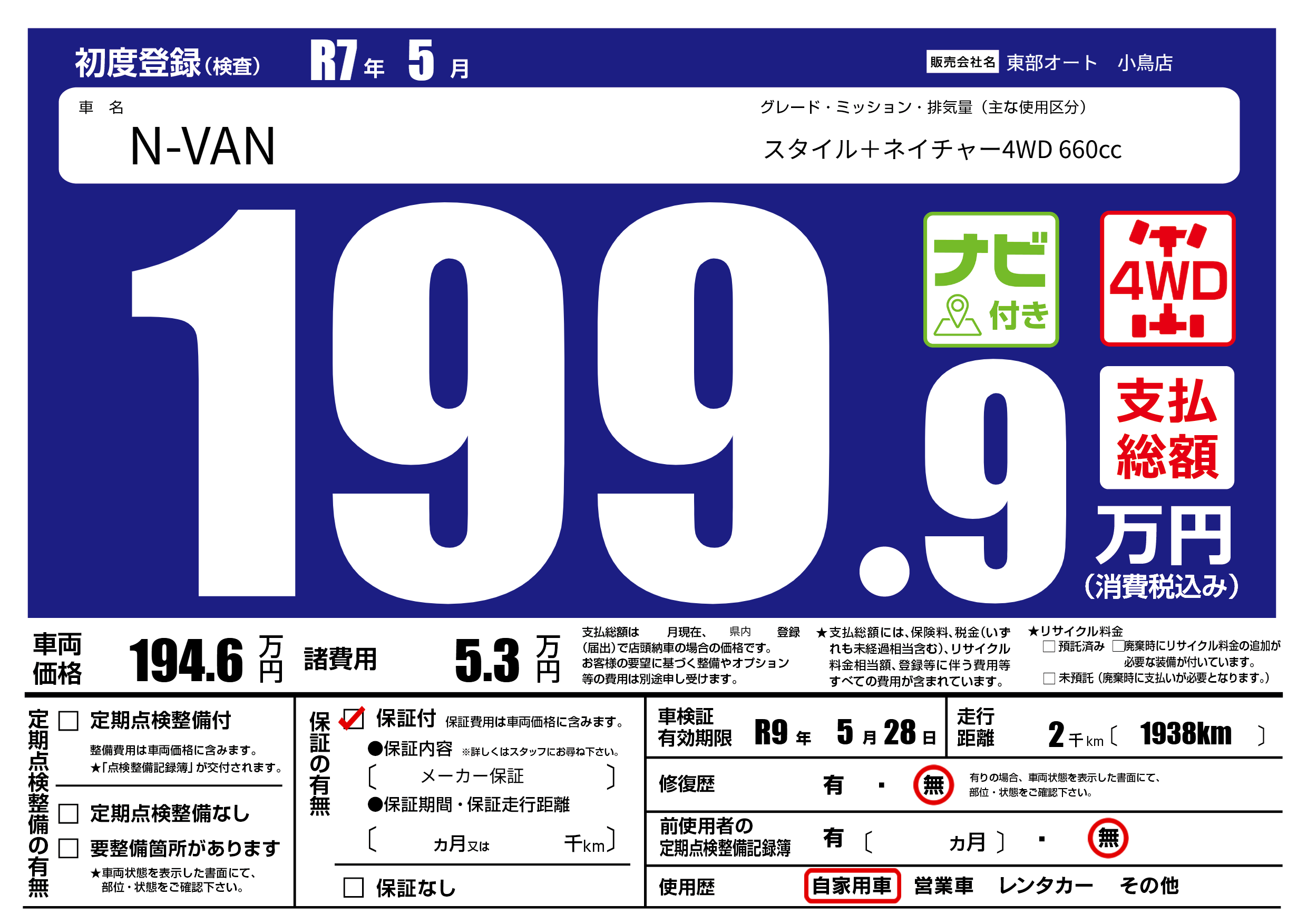 なし | 車検制限 | R9年5月28月 |